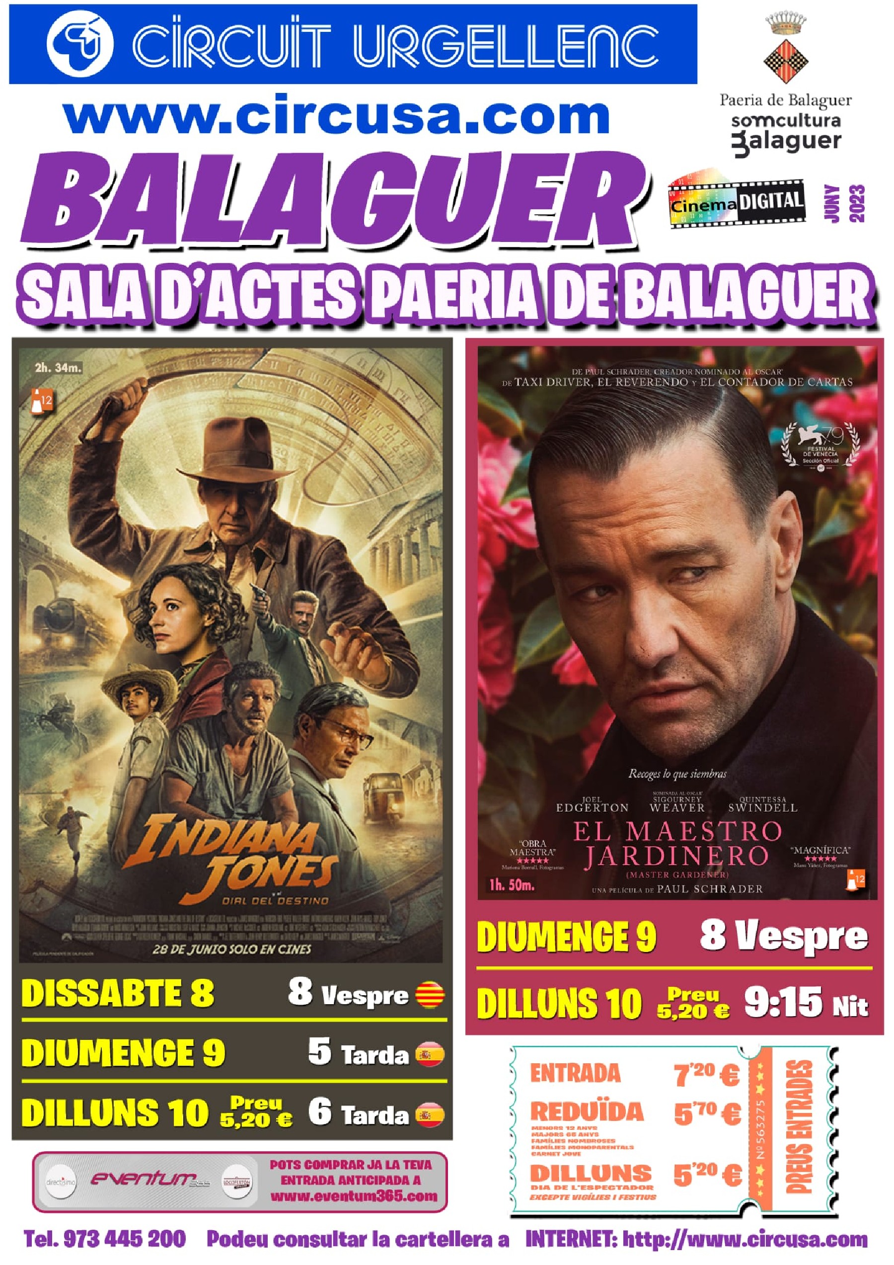 Arriba al cinema Balaguer la pel·lícula EL MAESTRO JARDINERO. I per segona setmana consecutiva, INDIANA JONES, i el dial del destí
