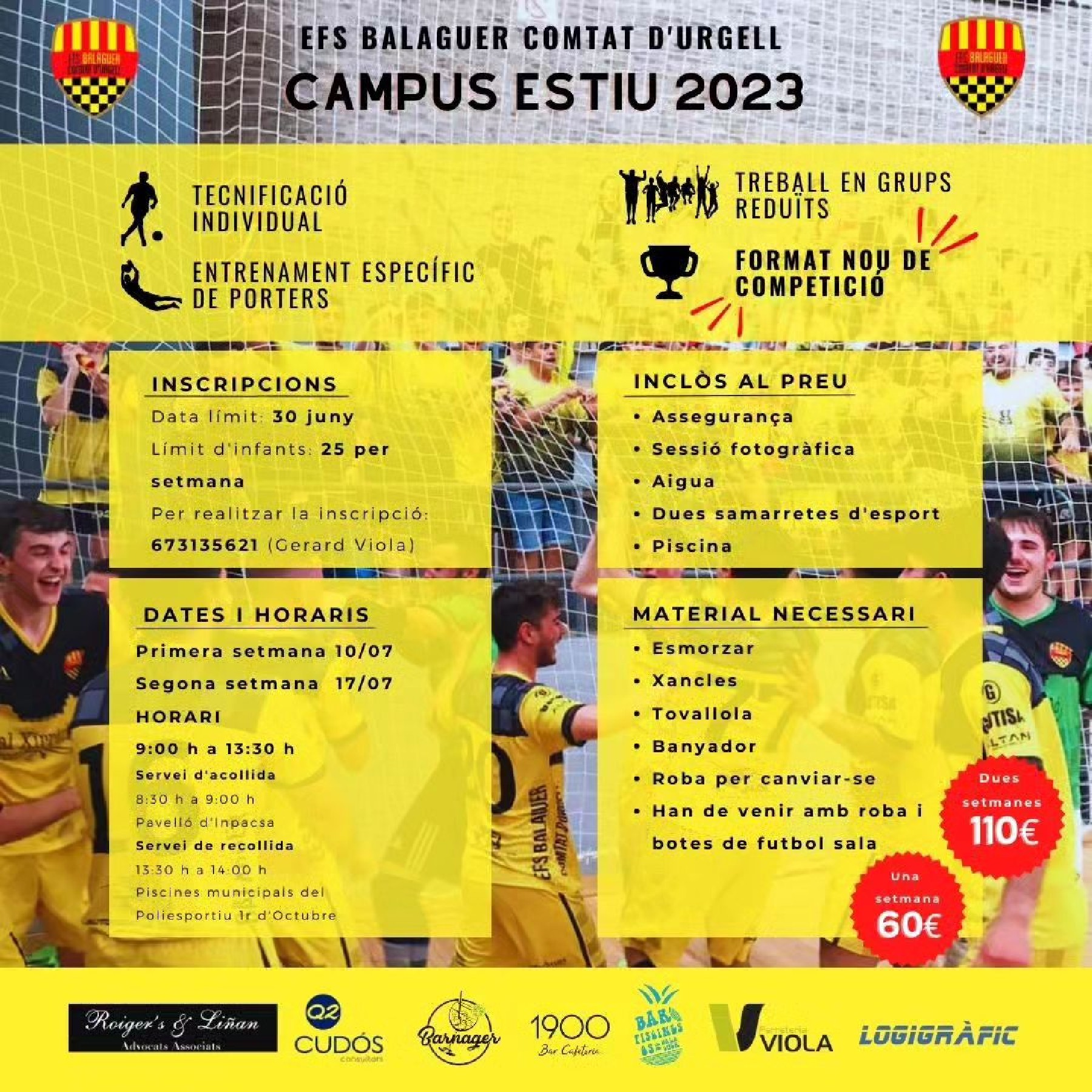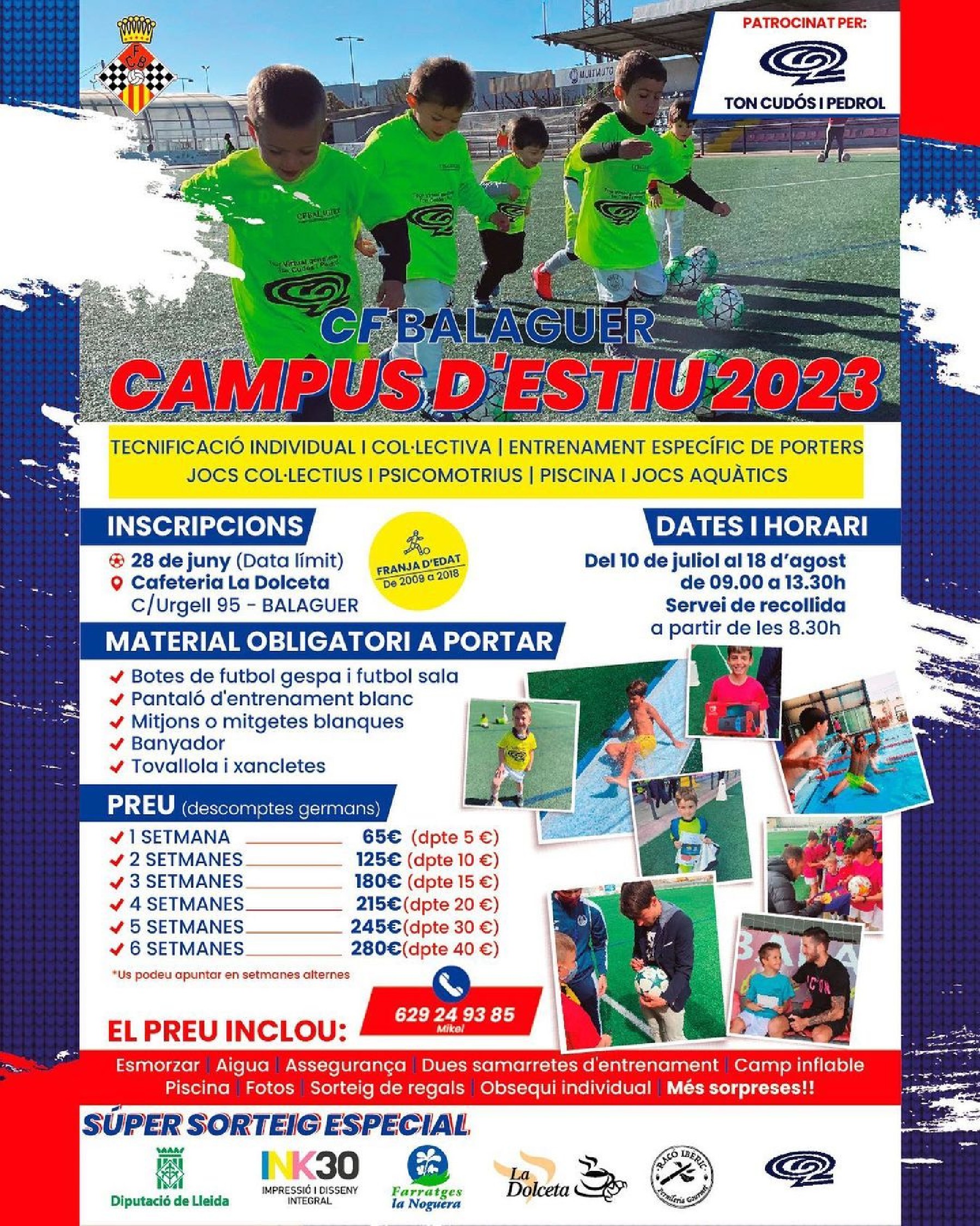 El Club Futbol Balaguer torna a organitzar el campus d'estiu, que s'adreça a infants estiguin o no vinculats al club. Es realitzarà del 10 de juliol al 18 d'agost i les inscripcions es poden formalitzar fins al 28 de juny