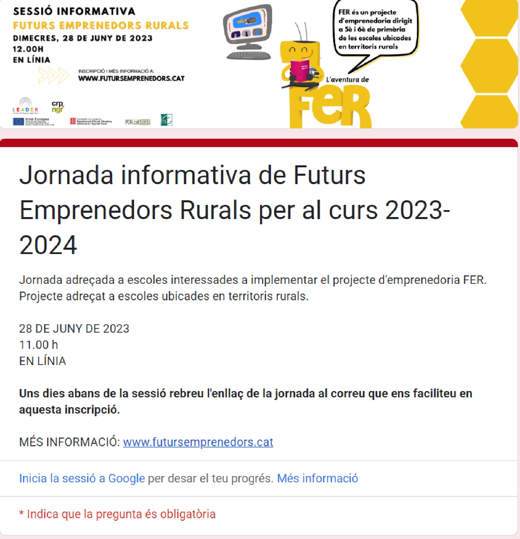 Sessió informativa en línia per a equips docents sobre el projecte escolar Futurs Emprenedors Rurals (FER)
