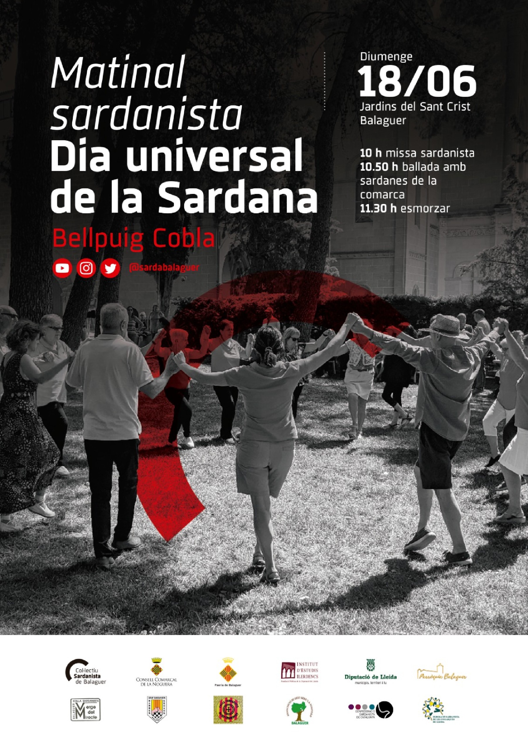 El Col·lectiu Sardanista de Balaguer, organitza per aquest diumenge 18 de juny, a ¾ d'11 del matí en els jardins del Sant Crist i amb la Bellpuig Cobla, una ballada de sardanes en el marc del Dia Universal de la Sardana
