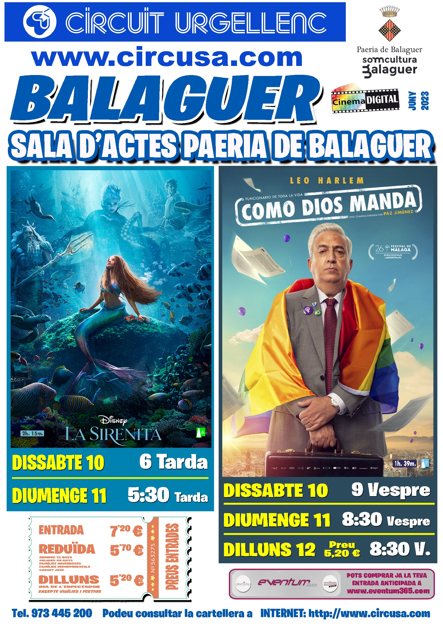 Al cinema Balaguer es podrà veure la projecció de les pel·lícules: LA SIRENITA i també COMO DIOS MANDA