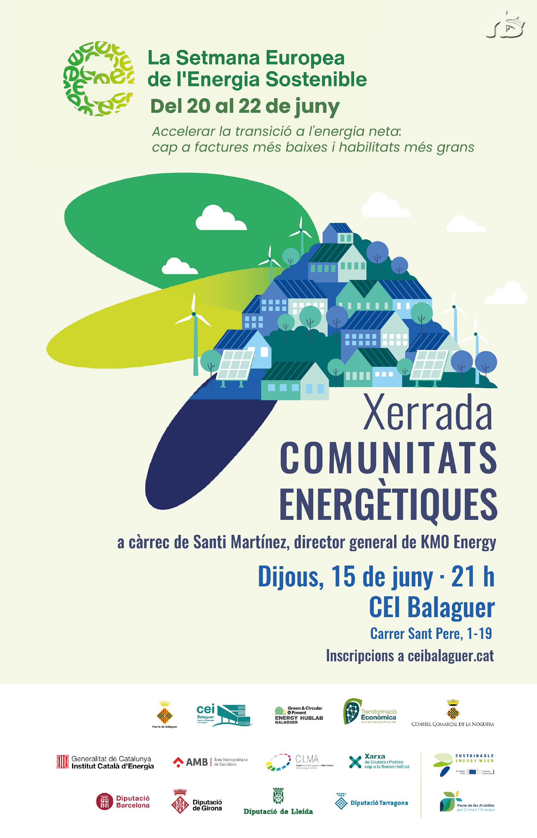 El CEI Balaguer acull aquest dijous una xerrada sobre comunitats energètiques organitzada per la Diputació de Lleida. Se celebra en el marc de la Setmana Europea de l'Energia Sostenible