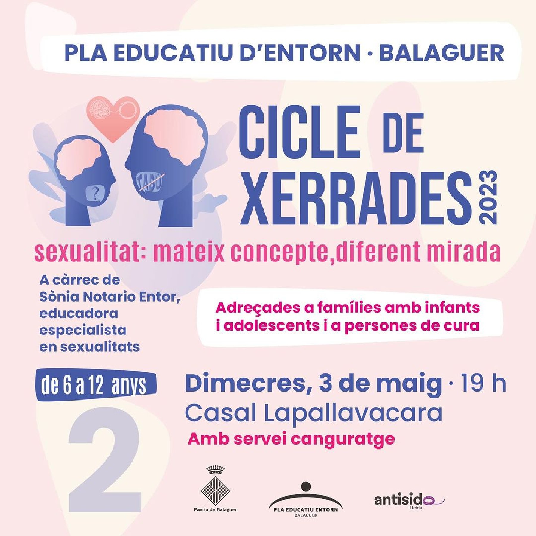 El Pla Educatiu d'Entorn organitza un cicle de xerrades. Amb el títol 'Sexualitat, mateix concepte, diferent mirada'',ofereix aquest dimecres una xerrada a càrrec de Sònia Notario