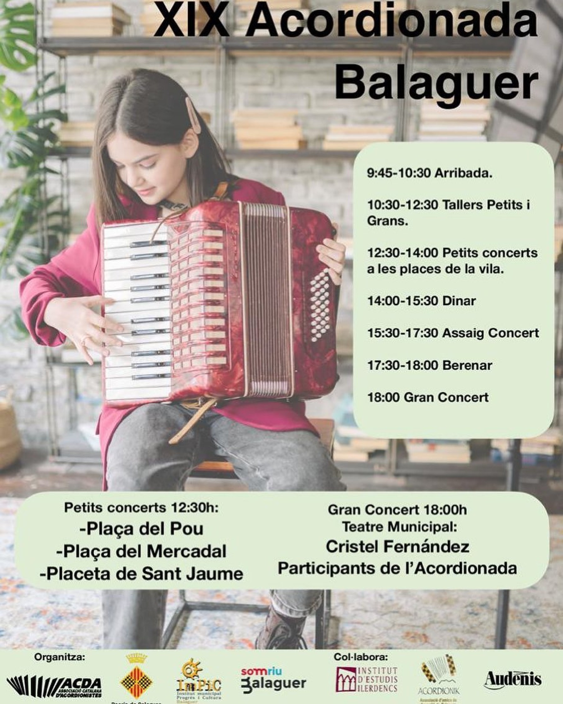 El Teatre Municipal de Balaguer serà escenari dissabte 6 de maig de la XIX Acordionada, organitzada per l'Associació Catalana d'Acordionistes. L'activitat es farà a partir de les 6 del tarda i comptarà amb prop d'un centenar d'acordionistes