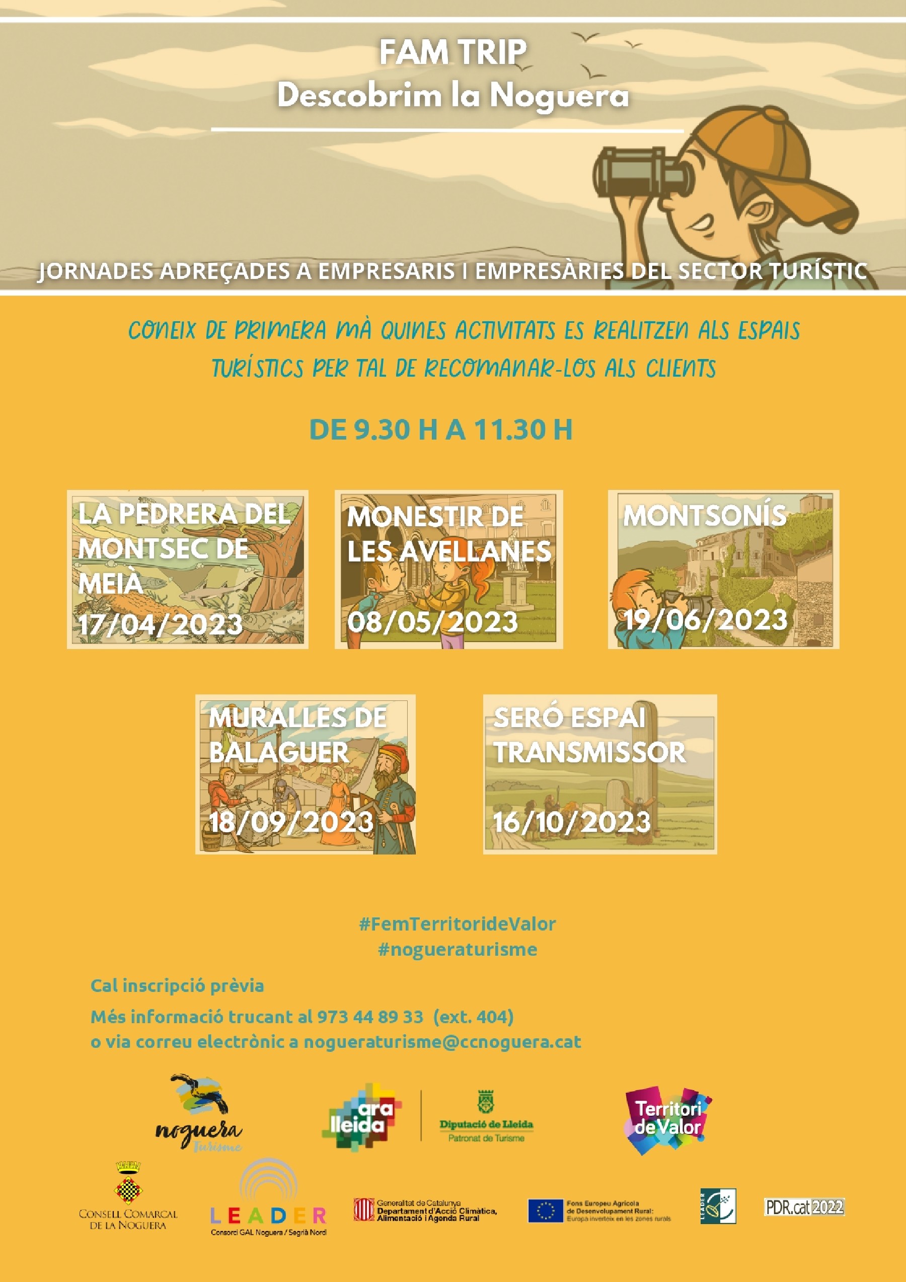 Tornen els Fam trips per als empresaris turístics de la Noguera, amb la intenció de promocionar la comarca turísticament. Aquest any es faran 5 jornades, la primera d'elles el 17 d'abril a la Pedrera del Montsec de Meià