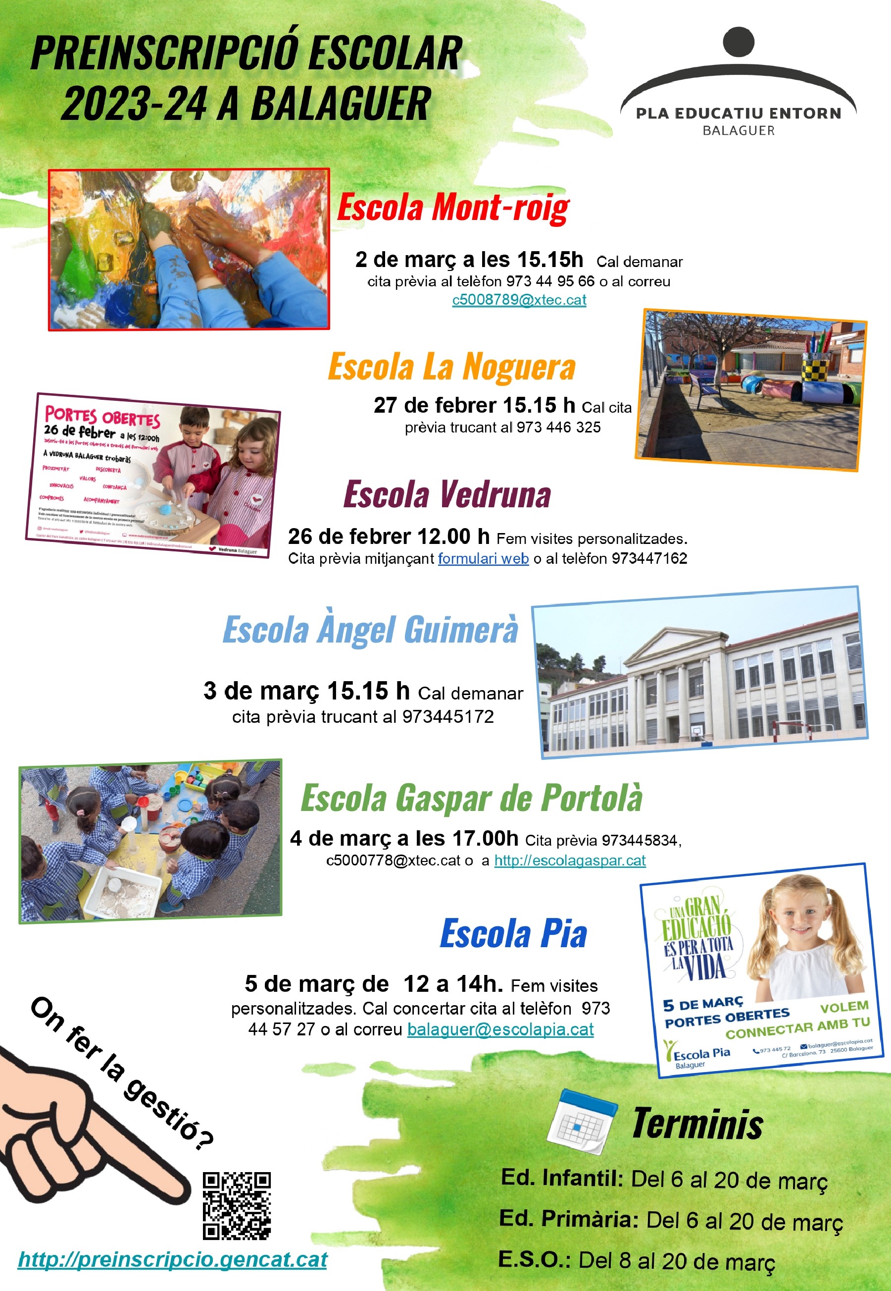 Jornades de portes obertes a la ciutat de Balaguer per a la pre inscripció escolar del curs 2023-2024