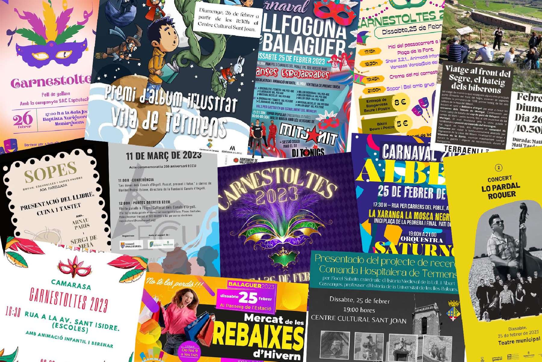 Balaguer fa aquest cap de setmana la Cloenda de la Capitalitat de la Sardana amb diversos actes. A comarca molts municipis celebren encara el carnaval, i altres proposen activitats sobre el romànic o el Font del Segre