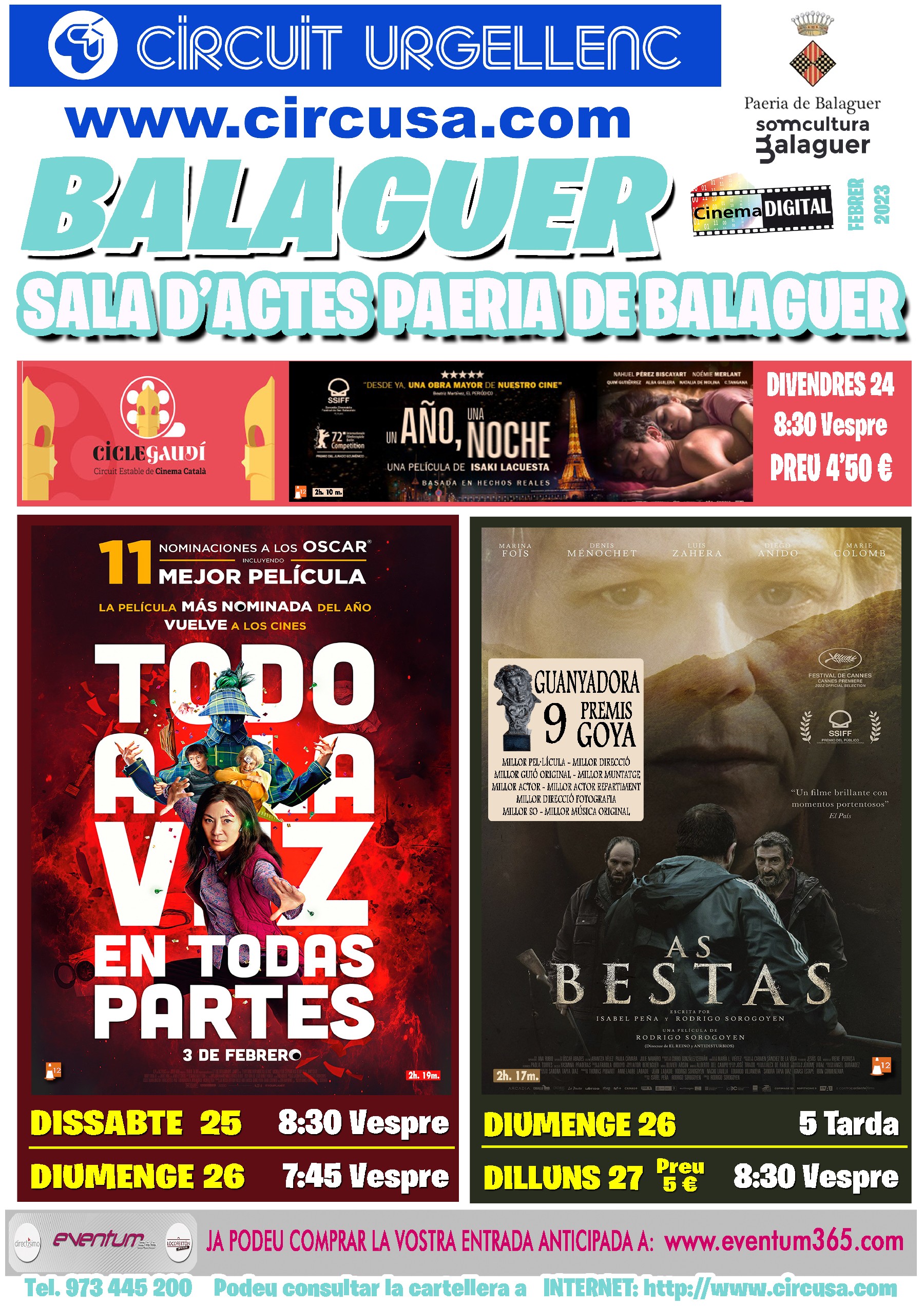 Al cinema Balaguer es podran veure aquest cap de setmana les pel·lícules: TODO A LA VEZ EN TODAS PARTES i també AS BESTAS