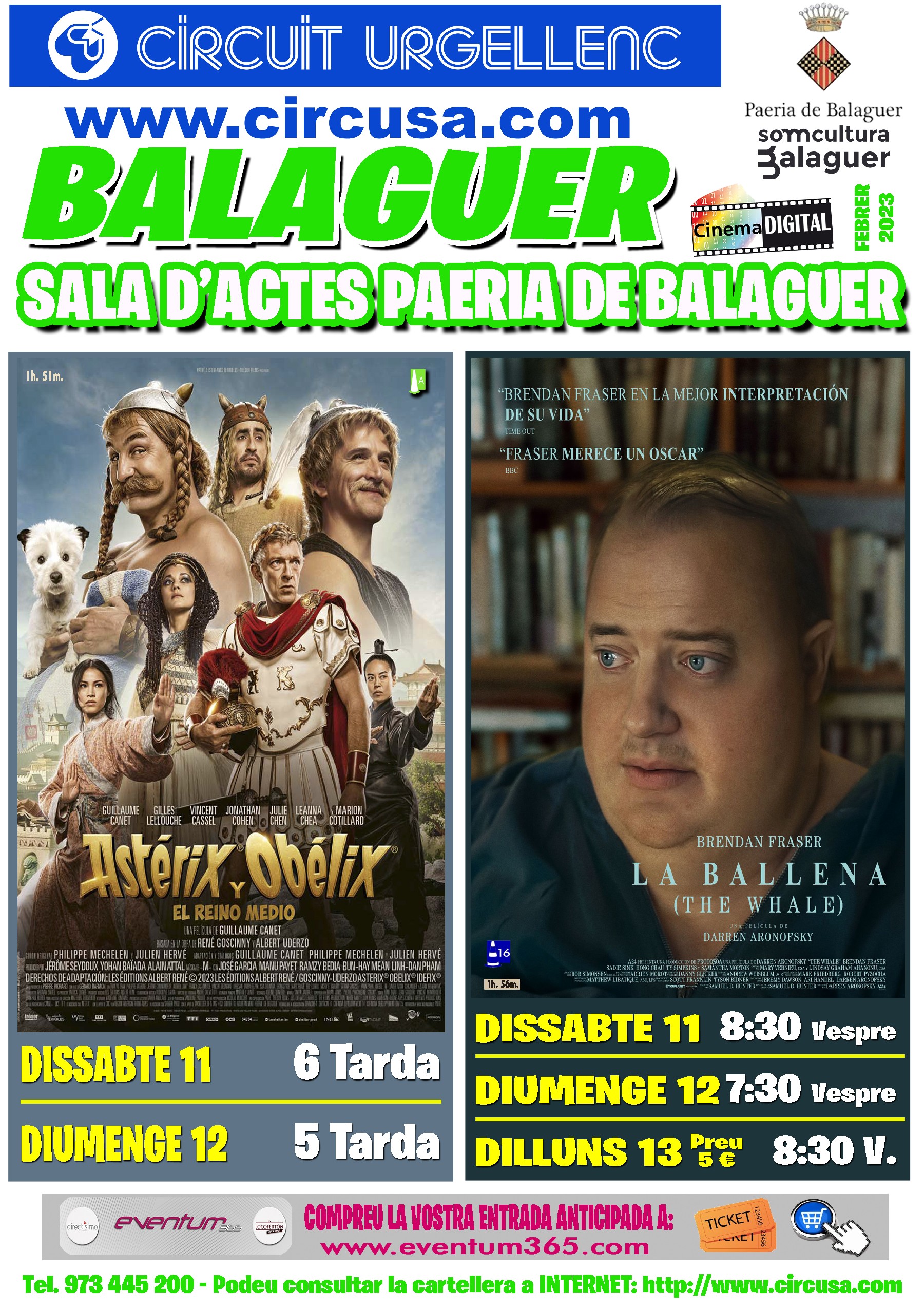 Al cinema Balaguer es podran veure les pel·lícules ASTERIX I OBELIX, EL REINO MEDIO i LA BALLENA