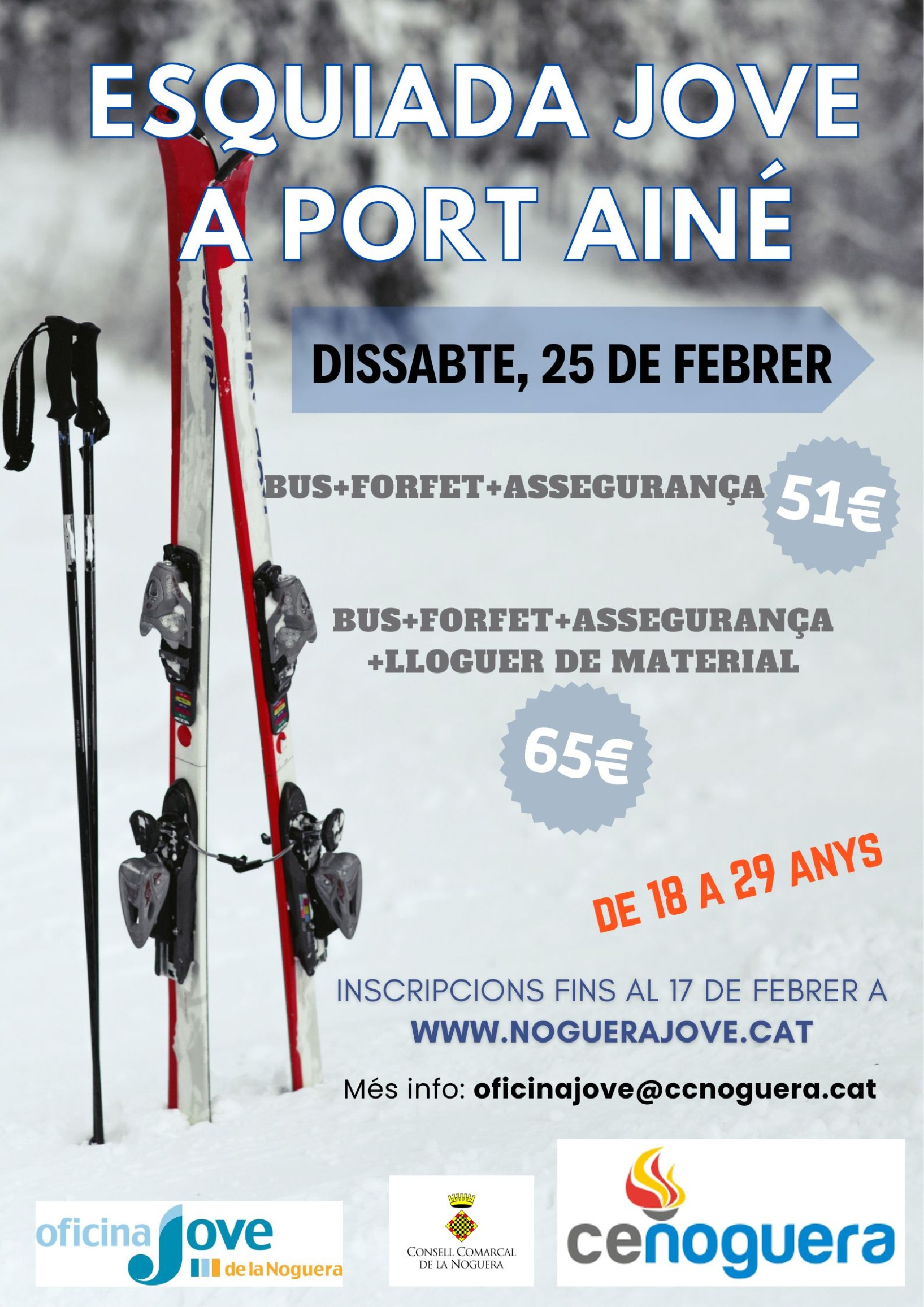 L'Oficina Jove de la Noguera organitza una esquiada jove a Port Ainé per al proper dissabte 25 de febrer, una activitat adreçada a joves de 18 a 29 anys