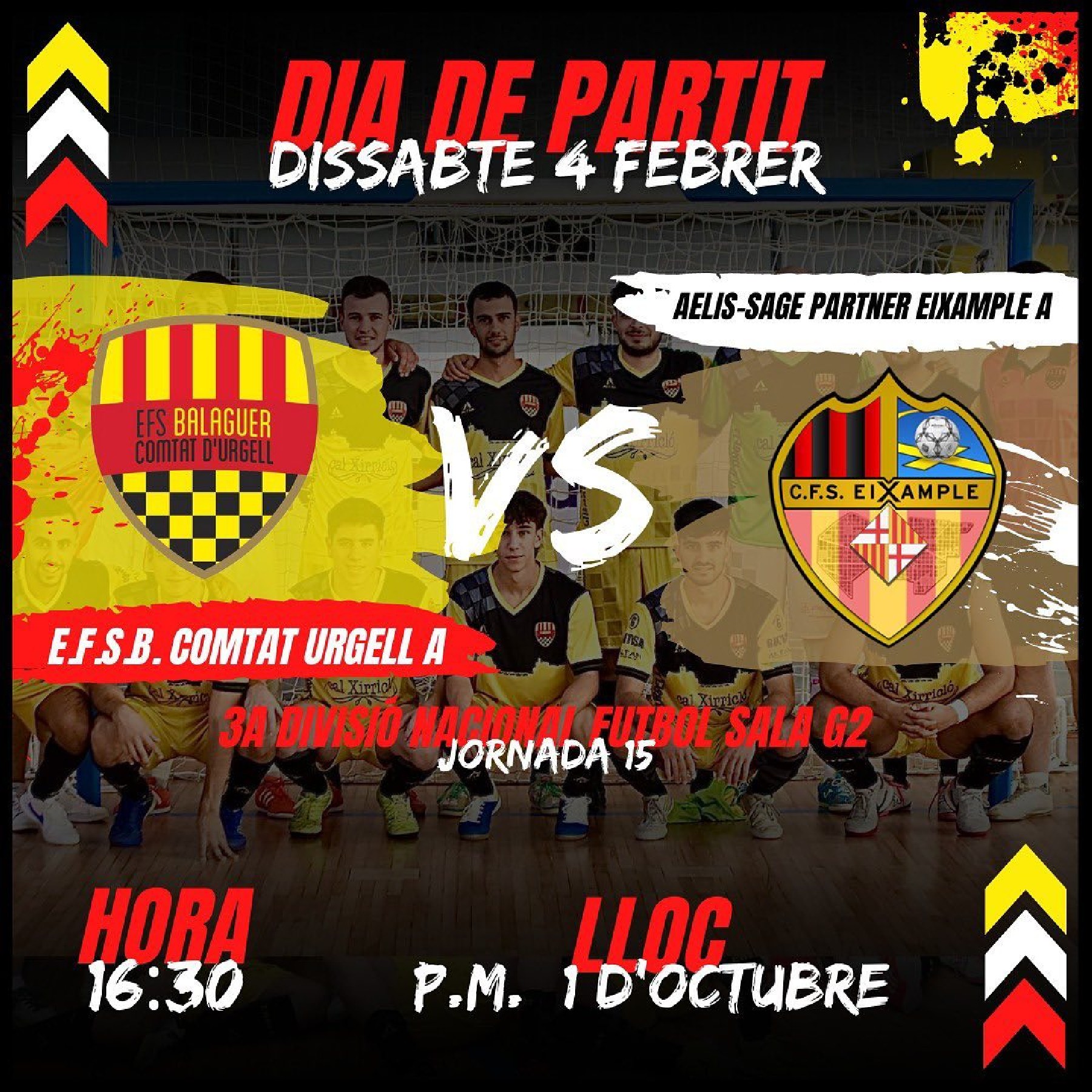 El primer equip del Comtat d'Urgell tanca la primera volta aquest dissabte contra l'Eixample. A Primera Catalana el Balaguer Comtat B visita al Pardinyes