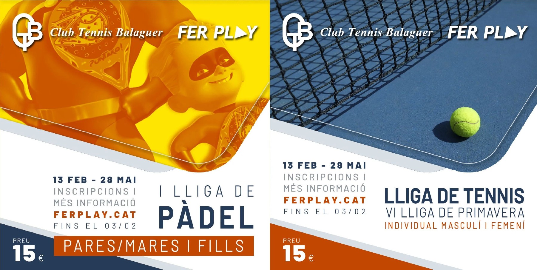 El Club Tennis Balaguer i Fer Play obren les inscripcions per una nova edició de les lligues de pàdel mixtes, i com a novetat la lliga mares-pares fills. També s'han obert les inscripcions per la lliga de tennis