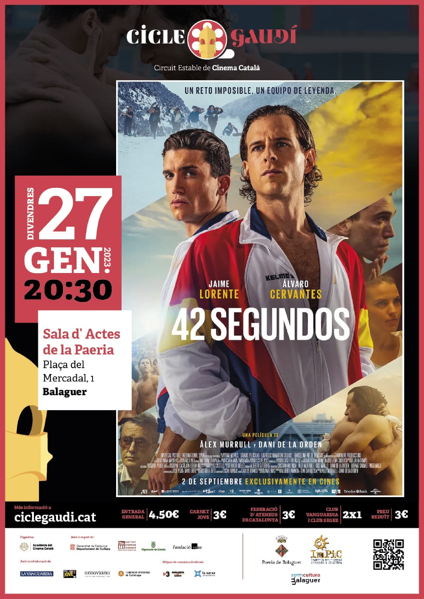 El divendres 27 de gener arriba al cinema Balaguer, dins del Cicle Gaudí de cinema català, la projecció de la pel·lícula 42 segundos, dirigida per Dani de la Orden i Alex Murrull