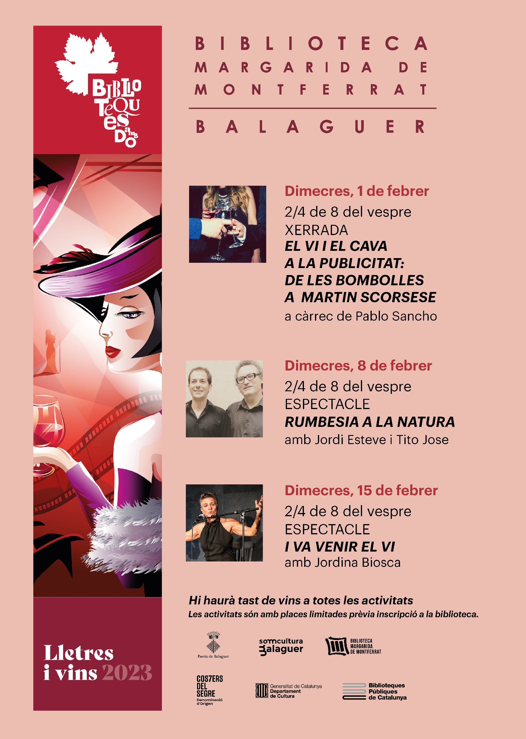 Per vuitè any consecutiu, la Biblioteca Margarida de Montferrat de Balaguer s'adhereix al Projecte Biblioteques amb DO, una iniciativa del Servei de Biblioteques del Departament de Cultura