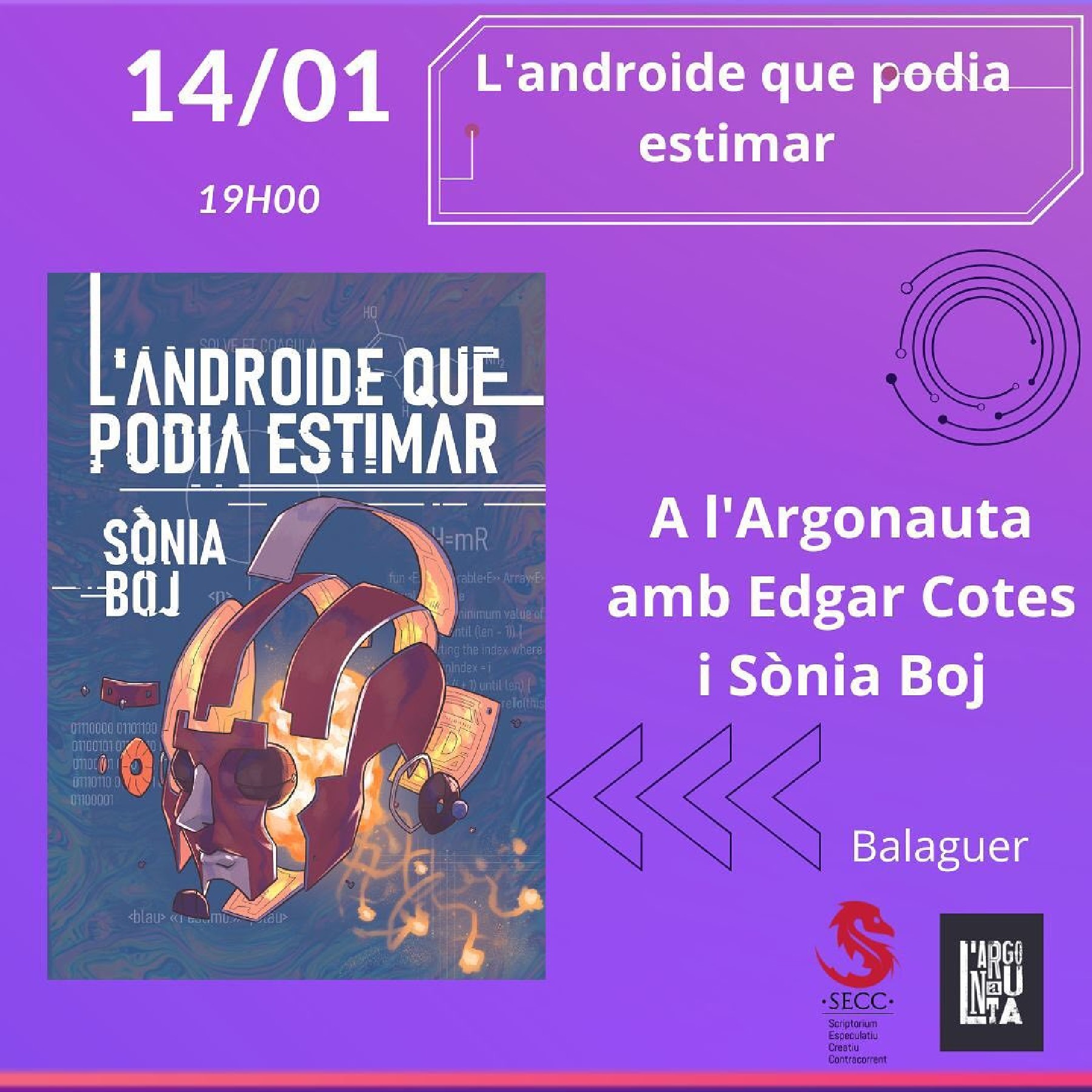La Llibreria l'Argonauta acull aquest dissabte a les 7 de la tarda la presentació del llibre 'L'androide que podia estimar'', de Sònia Boj. La presentació comptarà amb l'autora i l'escriptor balaguerí Edgar Cotés