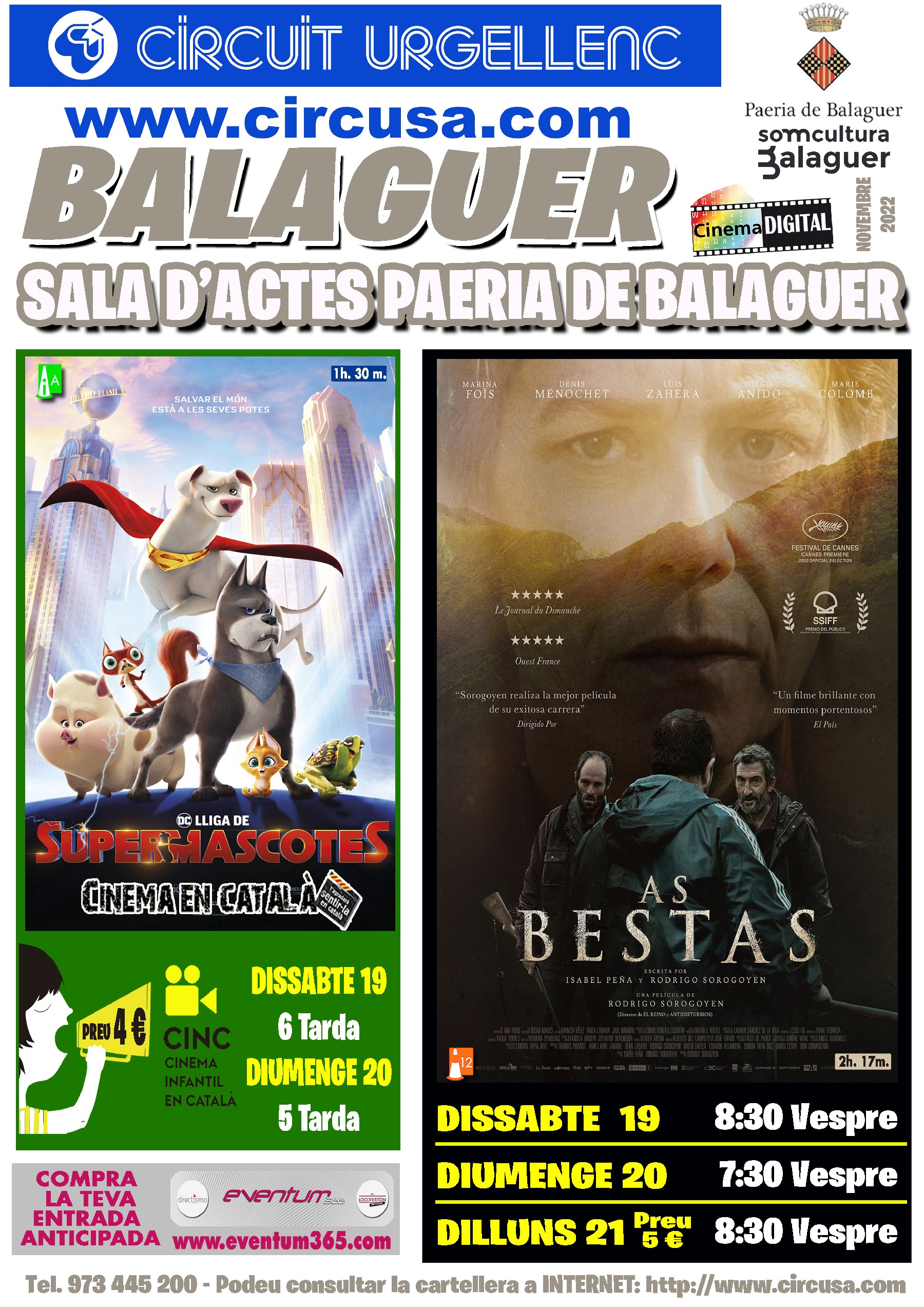 Al cinema Balaguer es podran veure les pel·lícules, SUPERMASCOTES, dins del Cicle Cinc, i AS BESTAS