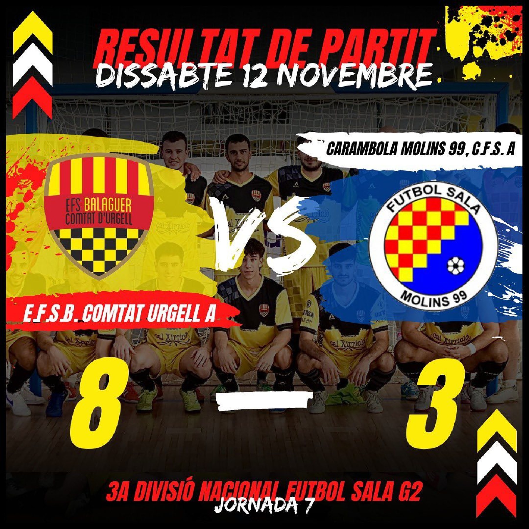 Contundent victòria per 8 a 3 del Comtat d'Urgell de futbol sala contra el Molins 99 en un partit en què es va veure una gran segona part amb 5 gols locals