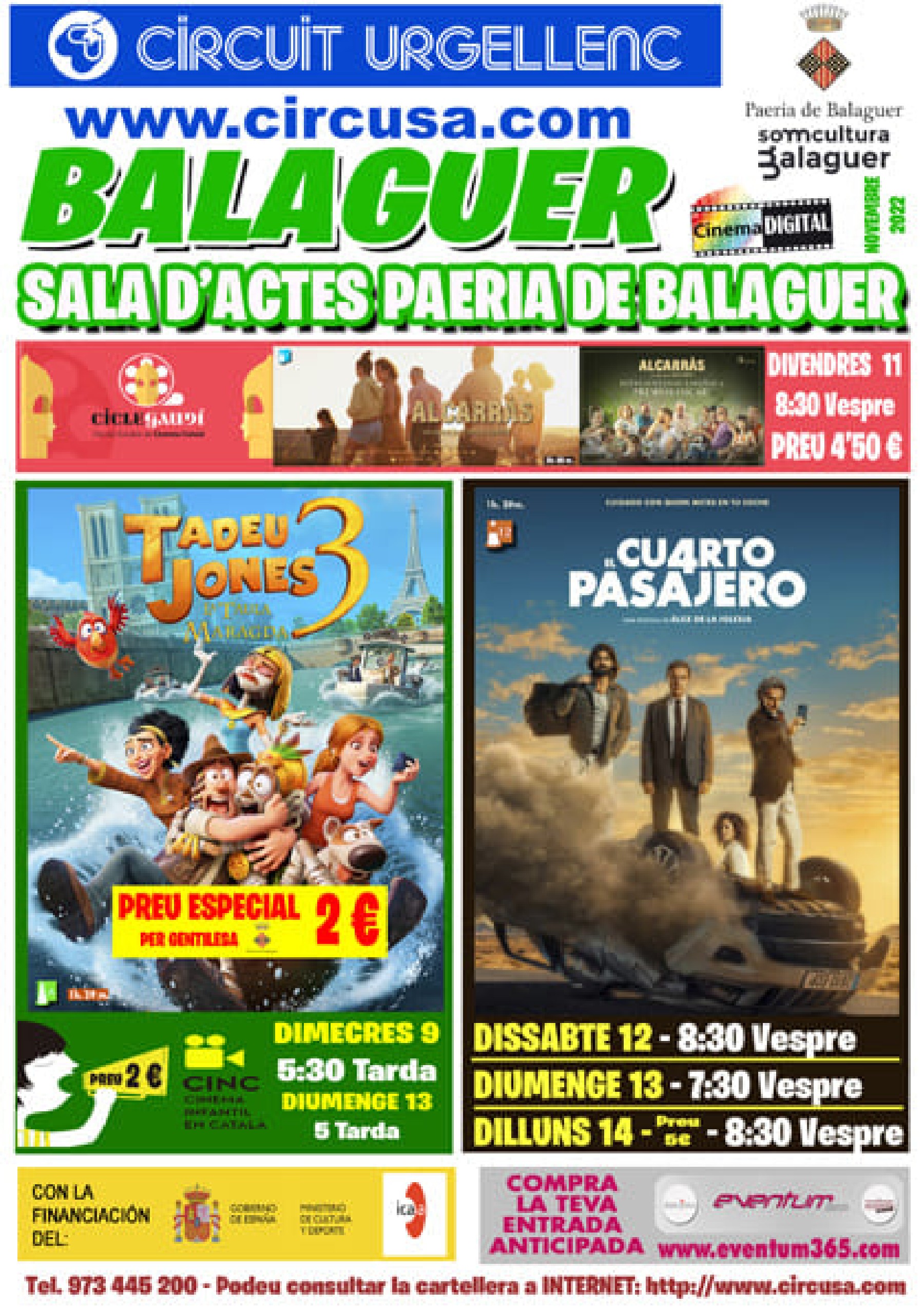 Al cinema Balaguer es podran veure les pel·lícules, Tadeu Jones 3, La Taula Maragda i El cuarto pasajero
