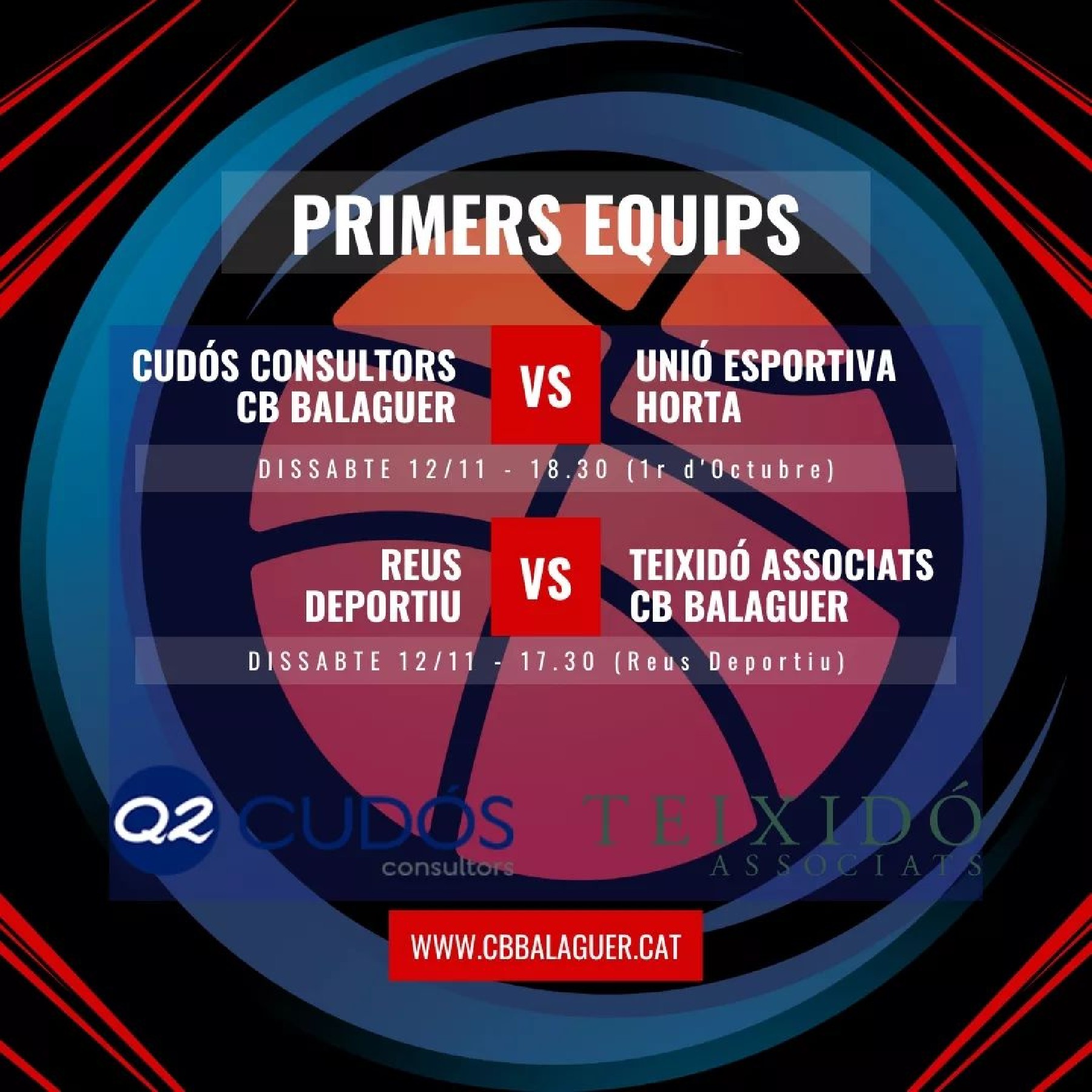 El Q2 Consultors del Club Bàsquet Balaguer rep aquest dissabte a la tarda al 1r d'octubre la visita de l'Horta. El Teixidó Associats juga com a visitant aquest cap de setmana i s'enfrontarà també dissabte al Reus Deportiu