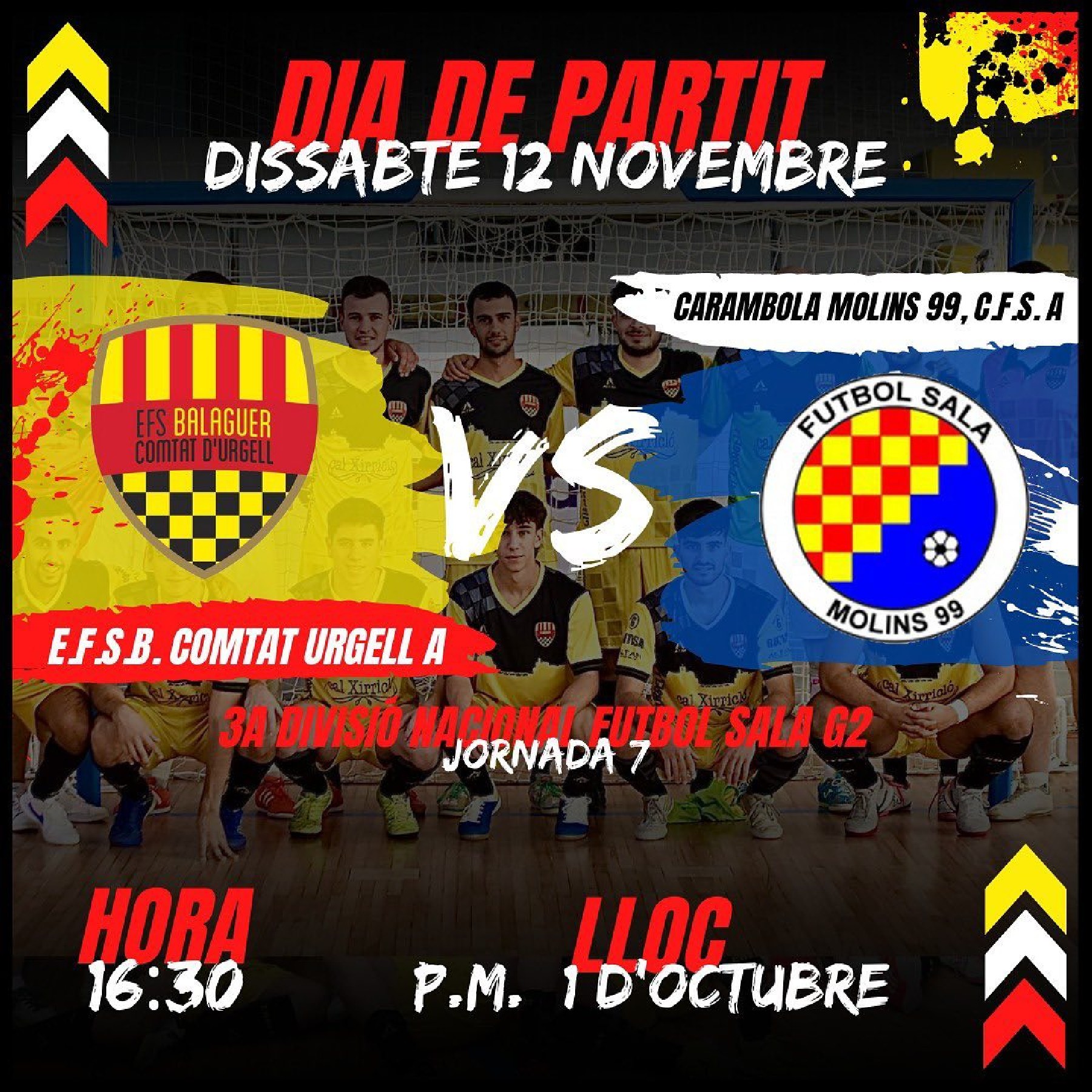 El Comtat d'Urgell de futbol sala rep dissabte al 1r d'Octubre de Balaguer al Carambola Molins 99, un rival assequible de la part mitja-baixa de la classificació