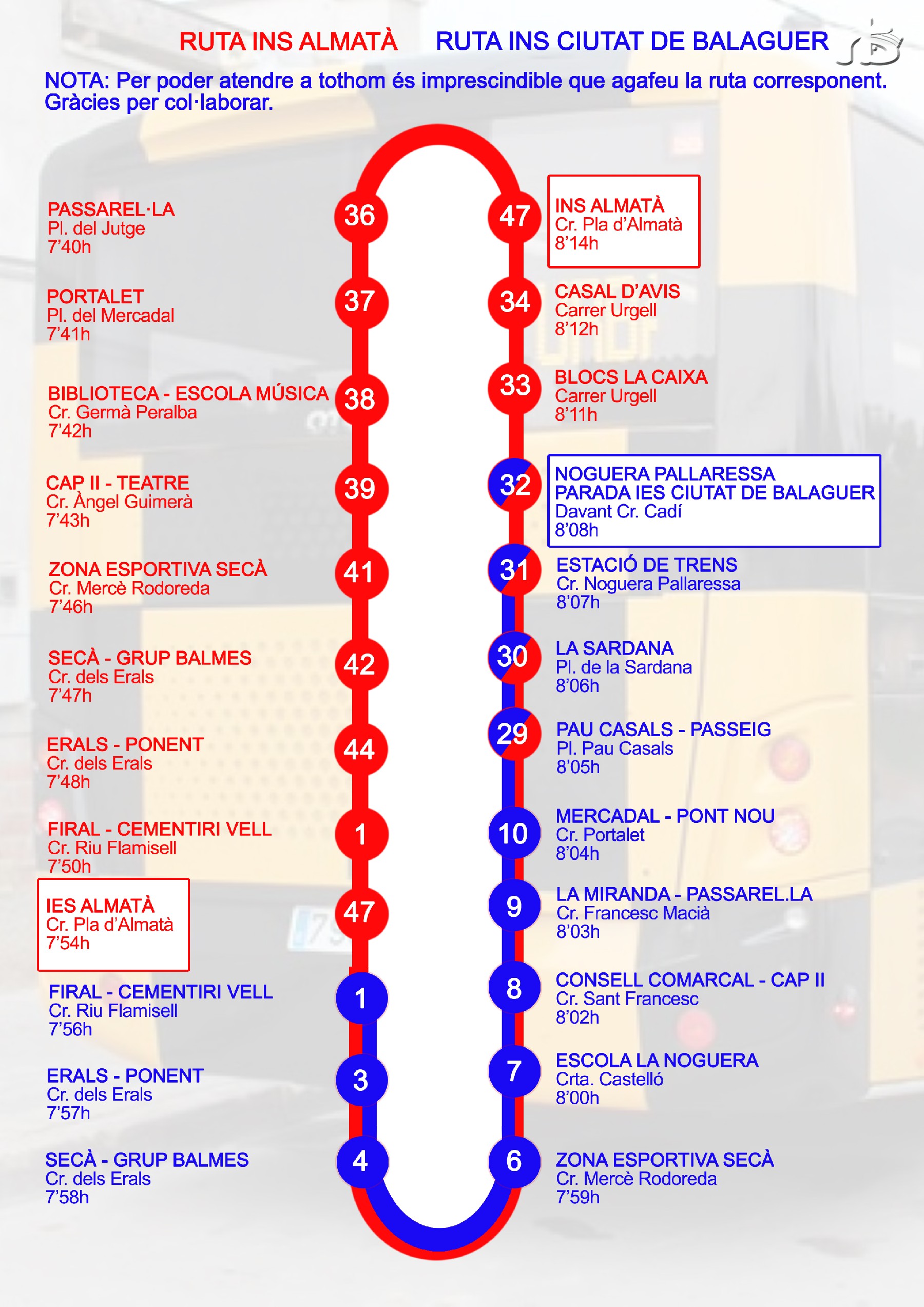 La Paeria de Balaguer posarà en marxa a partir de dilluns dia 14 nous horaris del bus urbà per als instituts degut als problemes de capacitat per absorbir tota la demanda