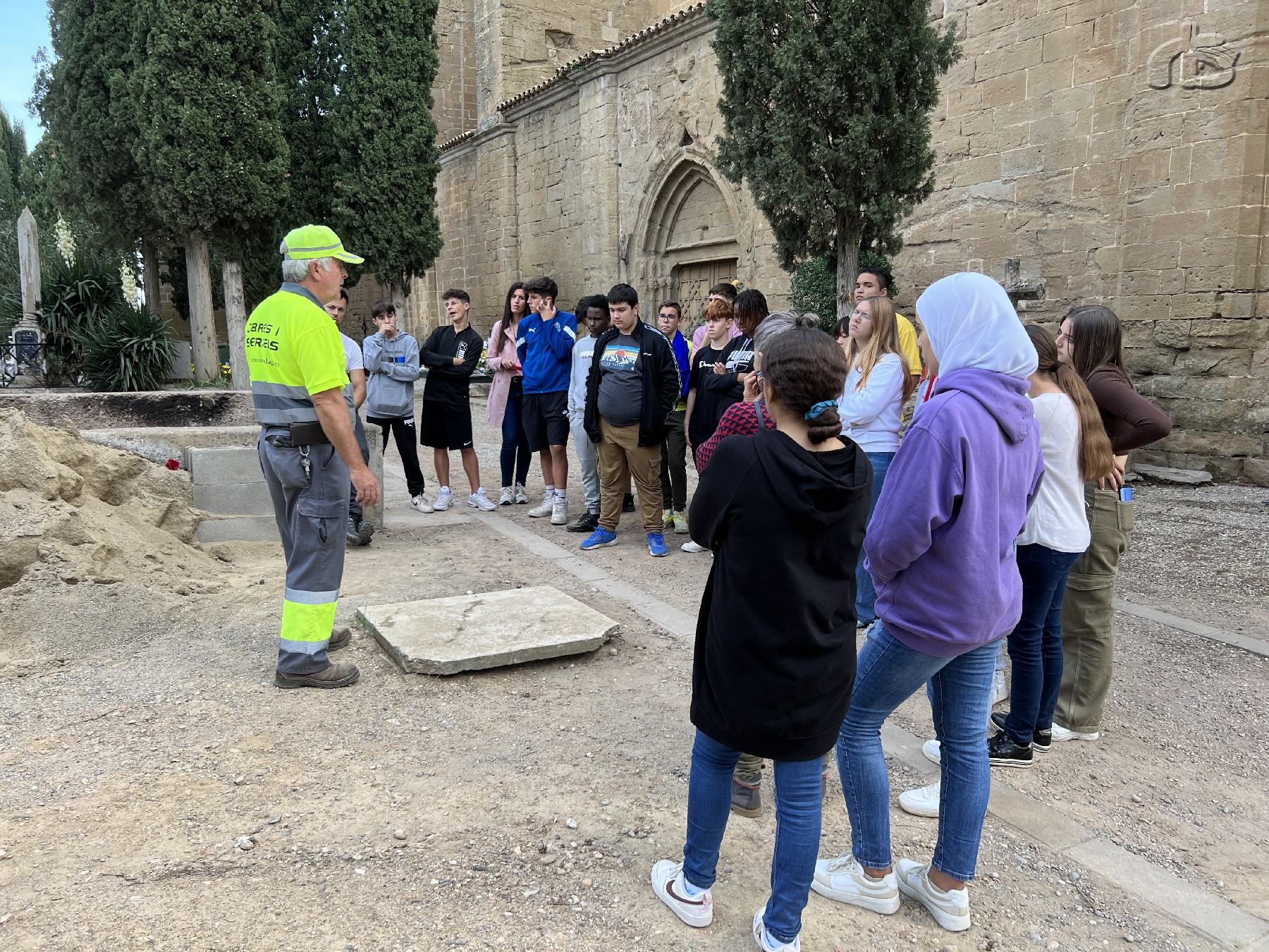Alumnes de l'Institut Almatà de Balaguer han visitat aquest dimecres el cementiri vell. És una activitat que aquest centre fa de forma anual per que els alumnes coneguin l'evolució dels ritus funeraris i el funcionament del cementiri