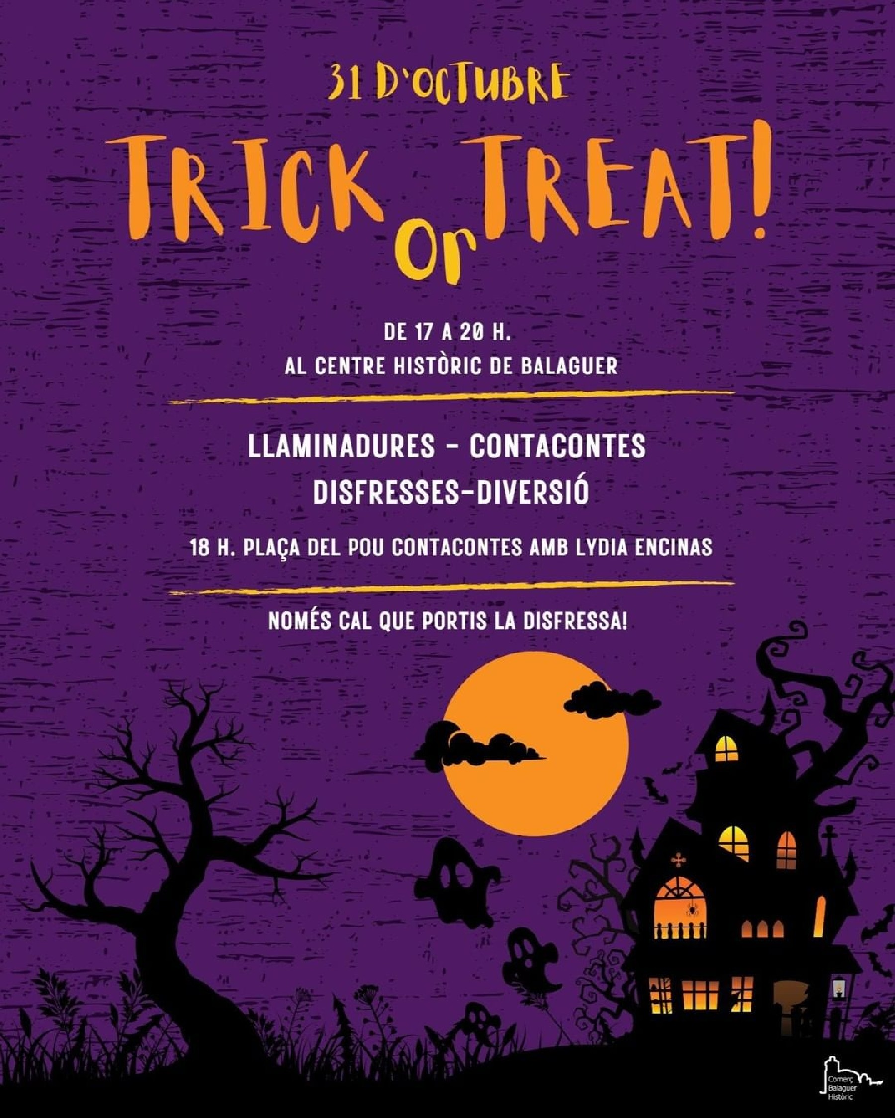 L'Associació de Comerciants del Centre Històric de Balaguer organitza el Trick or Treat el proper dilluns 31 octubre. Els infants podran recórrer les diverses botigues associades i demanar caramels, a més de gaudir d'un espectacle