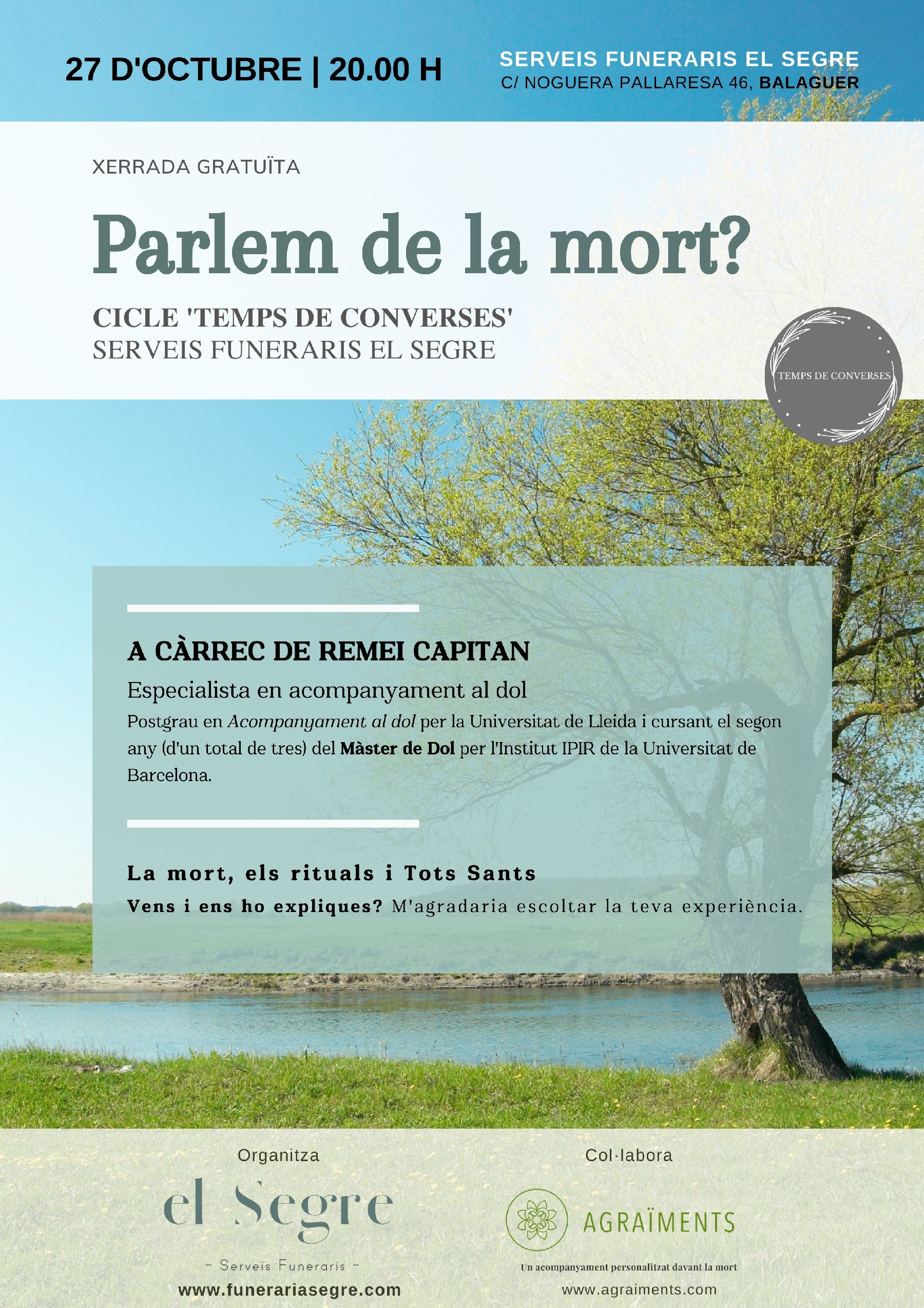 Remei Capitan, impulsora d'Agraïments, ofereix una xerrada demà a Balaguer amb el títol Parlem de la mort?'