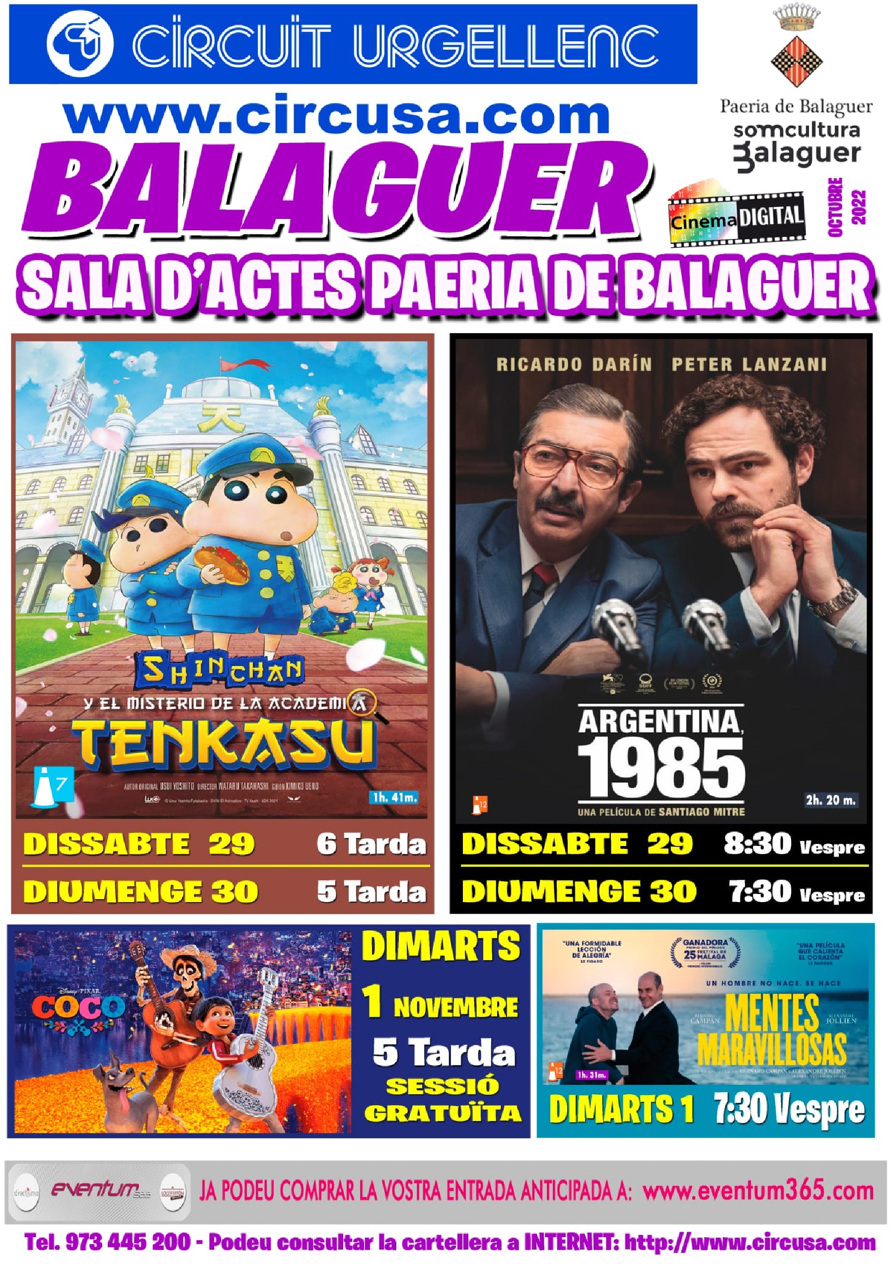 Al cinema Balaguer es podrà veure aquest cap de setmana les pel·lícules: SHINCHAN I EL MISTERIO DE LA ACADEMIA TENKASU, i també ARGENTINA 1985