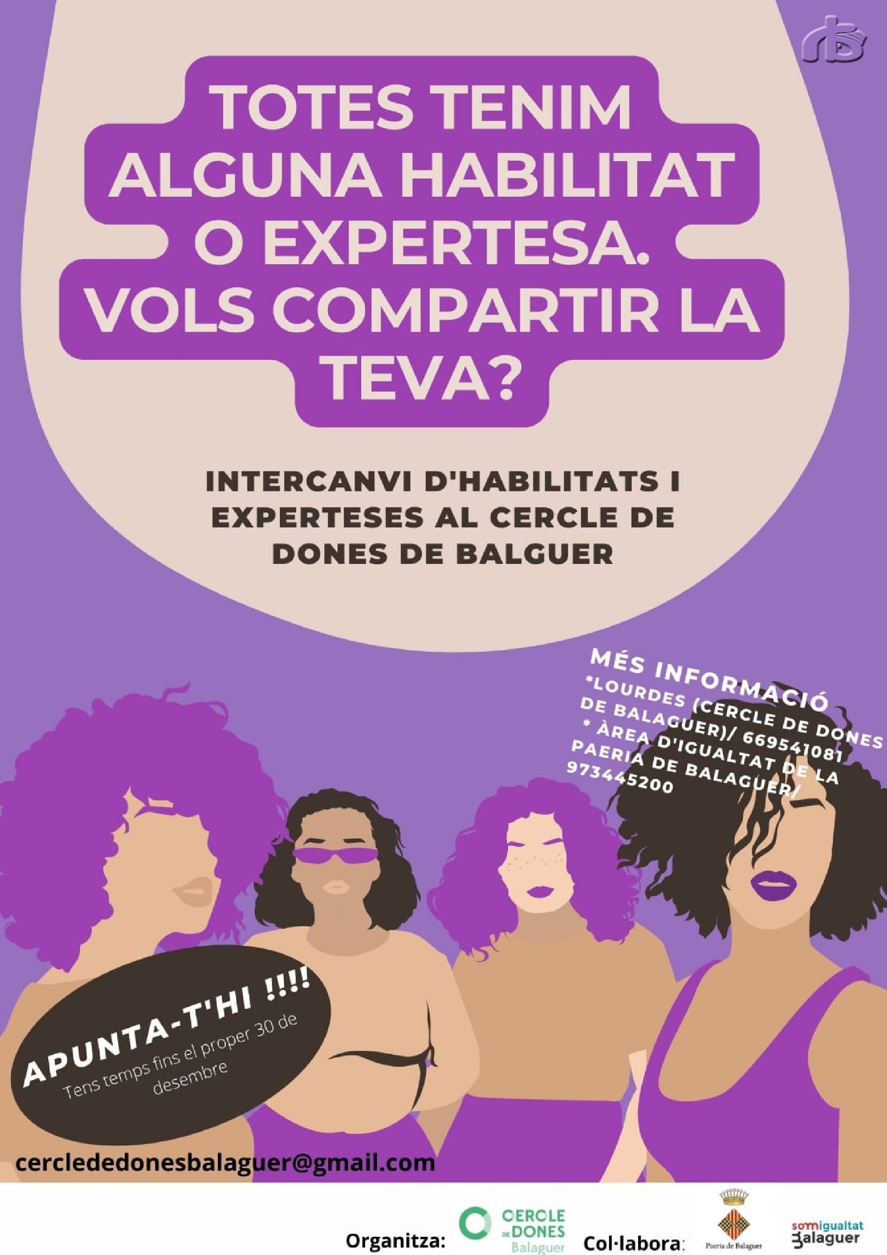 El Cercle de Dones de Balaguer reorienta les seves trobades amb una nova proposta per compartir experteses. L'objectiu és generar un espai de dones i per a dones o persones que se'n sentin basat en l'intercanvi d'experiències i coneixements