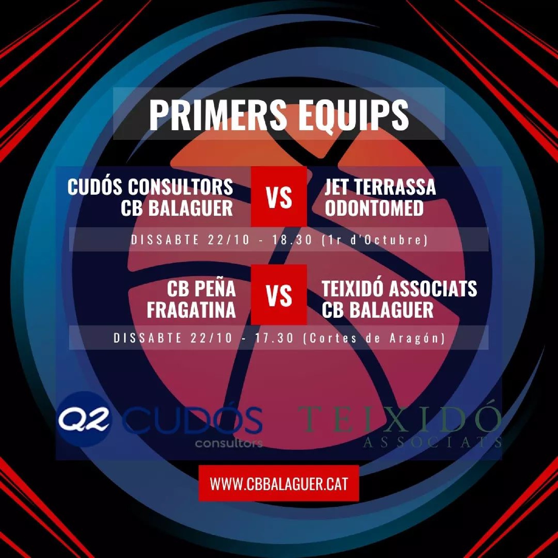 El Teixidó Associats del Club Bàsquet Balaguer visita aquest dissabte la pista de la Peña Fragatina. El Q2 Consultors rebrà també dissabte al JET Terrassa, un dels rivals complicats de la categoria