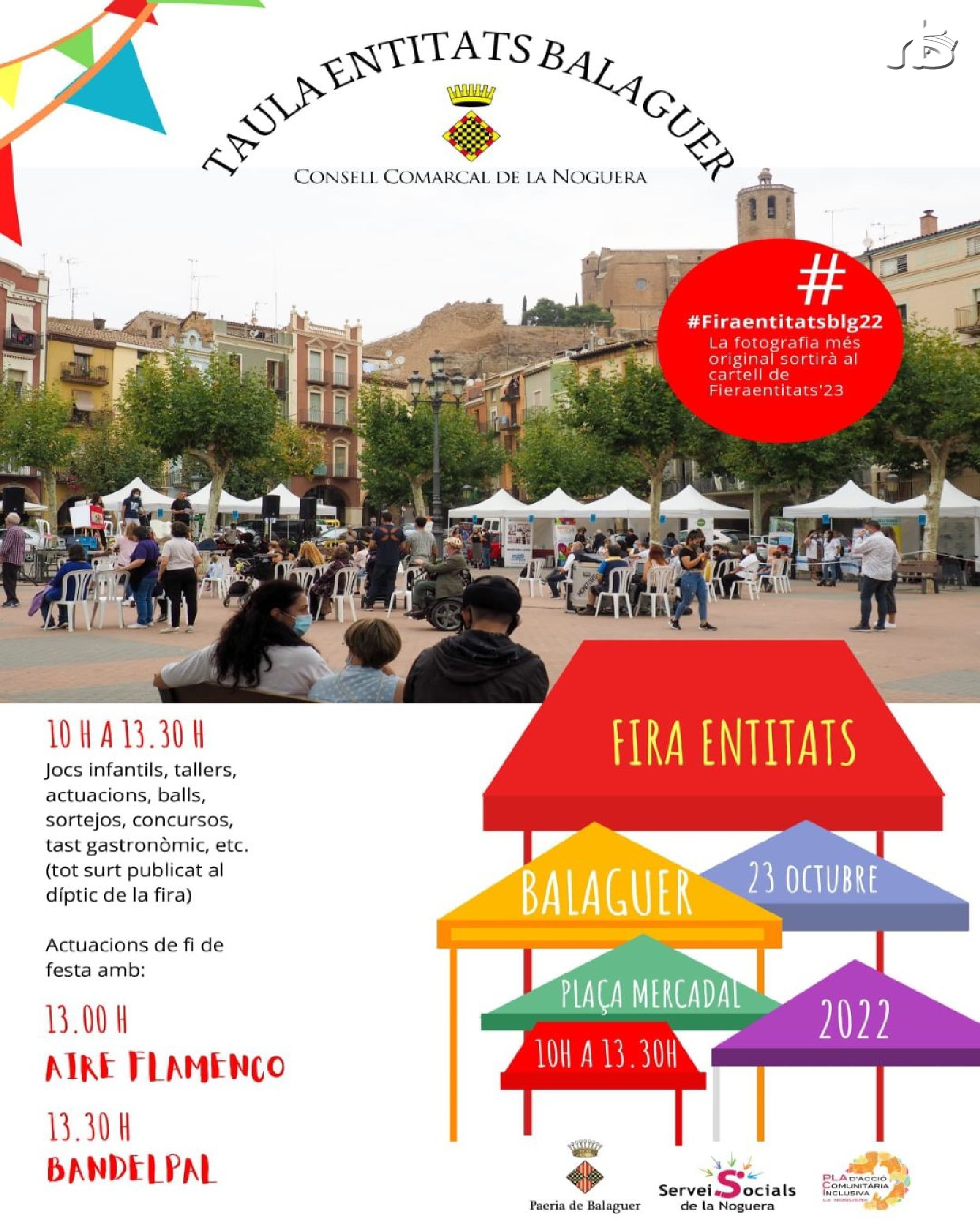 La plaça del Mercadal de Balaguer serà escenari aquest diumenge d'una nova edició de la Fira d'Entitats després que quedés ajornada el passat mes de setembre per la previsió de pluja
