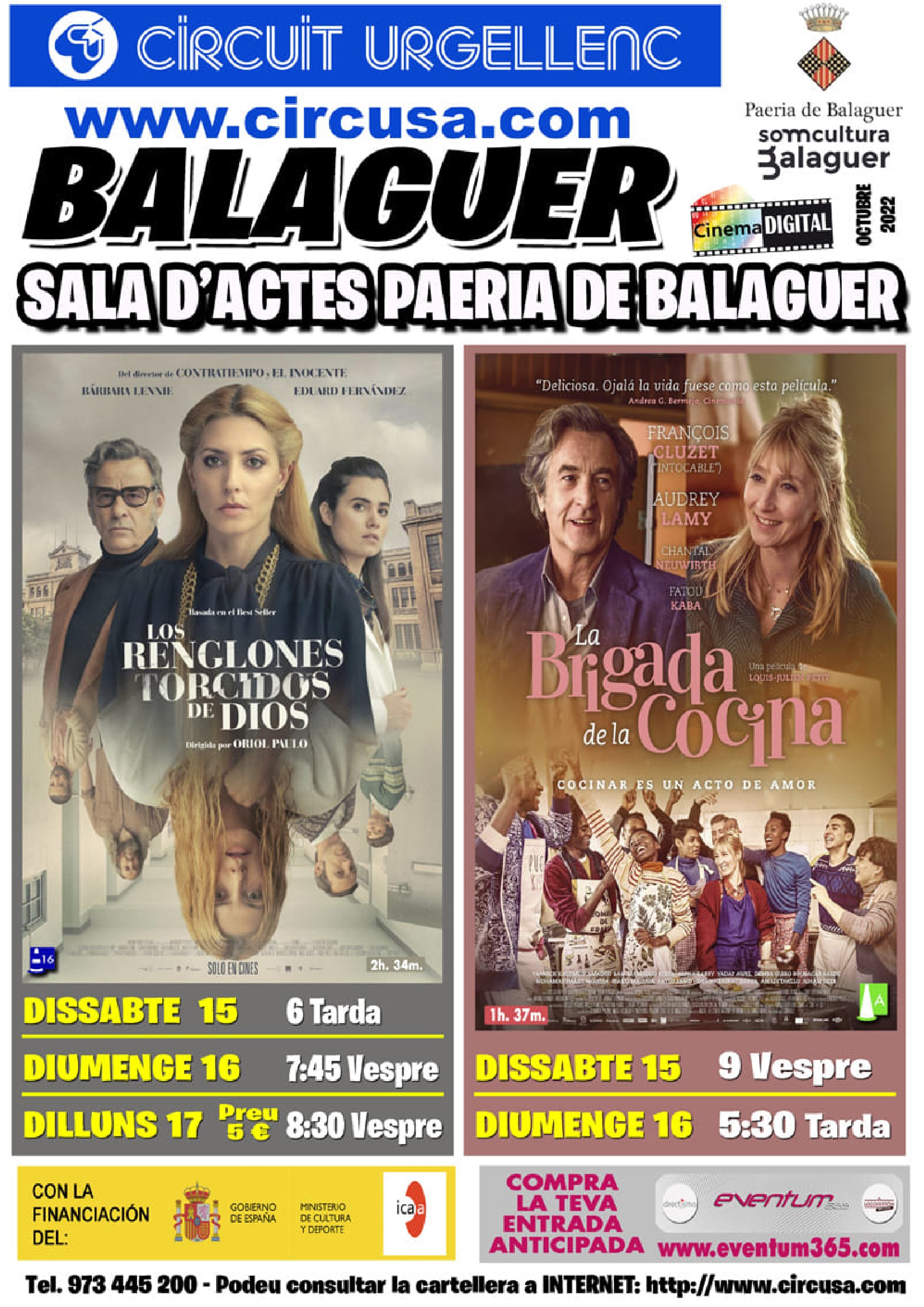 Al cinema Balaguer es podrà veure les pel·lícules: LOS RENGLONES TORCIDOS DE DIOS i també LA BRIGADA DE LA COCINA