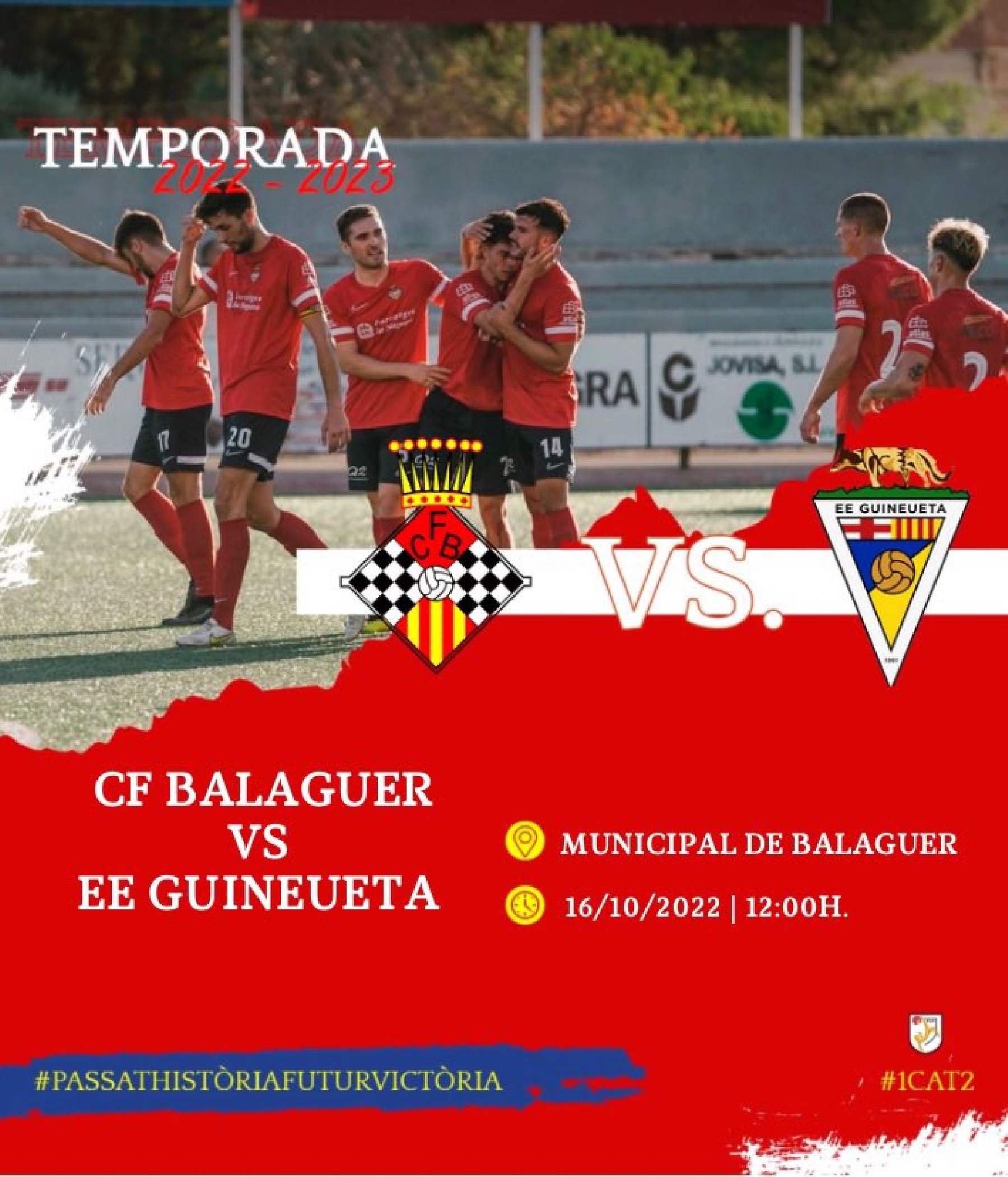 El primer equip del Club Futbol Balaguer juga per segon cap de setmana consecutiu davant de l'afició. Serà diumenge a les 12 del migdia al municipal i contra la Guineueta. El Juvenil rep dissabte al Sant Cugat