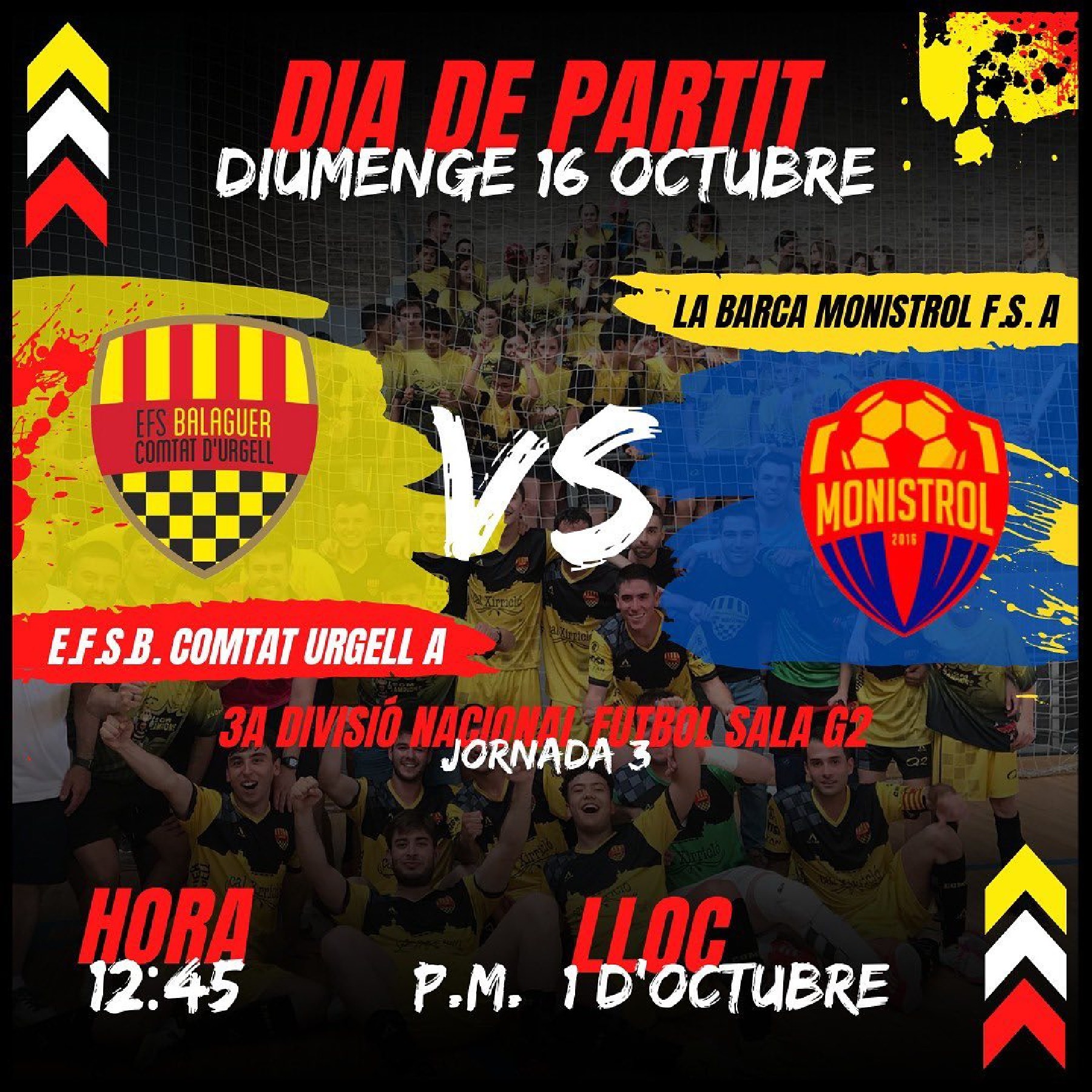 El Comtat d'Urgell de futbol sala rep aquest diumenge al 1r d'Octubre de Balaguer a La Barca Monistrol en la 3a jornada de lliga