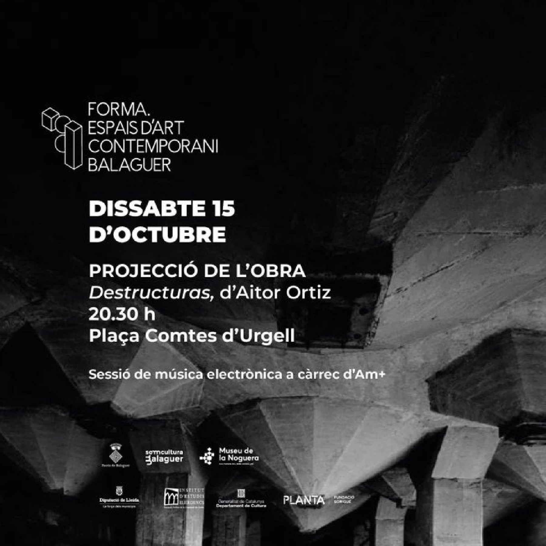 Cloenda de la segona edició de Forma. Espais d'Art Contemporani aquest dissabte a la plaça Comtes d'Urgell amb la projecció de l'obra Destructuras d'Aitor Ortiz