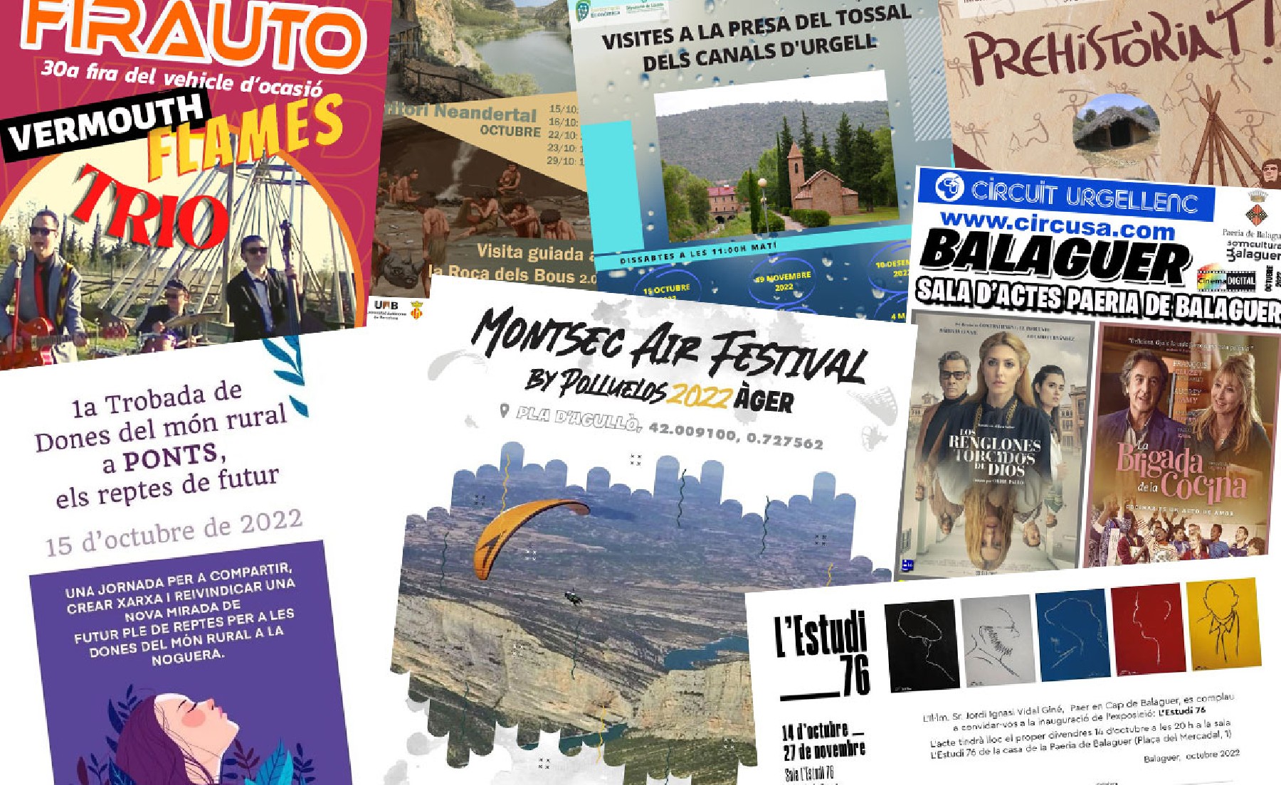 Cap de setmana de Firauto, la clausura del Forma i el concert de cant líric germans Pla a Balaguer, entre altres propostes. A comarca, arriba el Montsec Air Festival, les visites a la Casa de comportes de Ponts o les activitats de l'Espai Orígens.