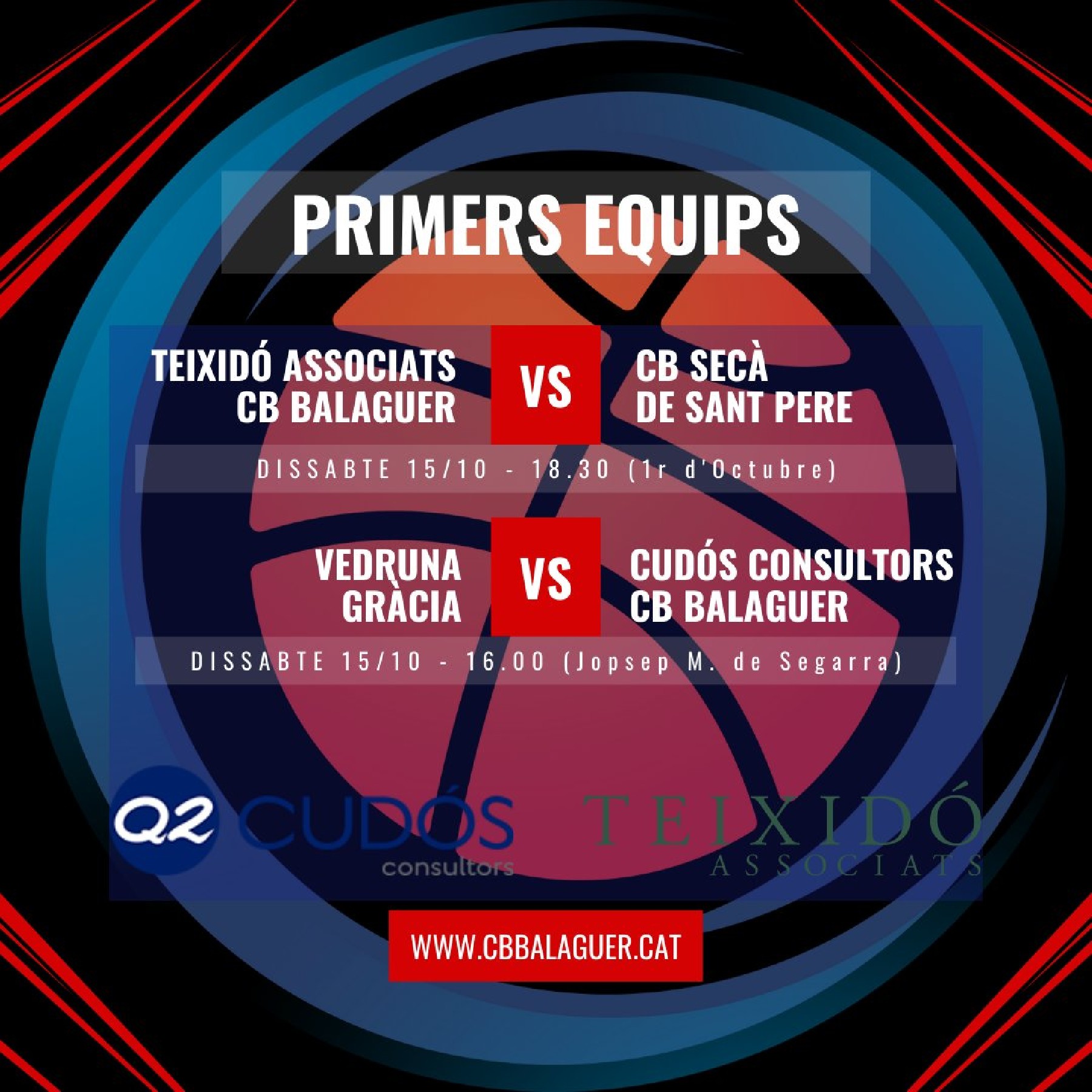El Teixidó Associats del Club Bàsquet Balaguer rep aquest dissabte al 1r d'octubre la visita del Secà de Sant Pere. El Cudós Consultors es desplaça també dissabte a la pista del Vedruna Gràcia