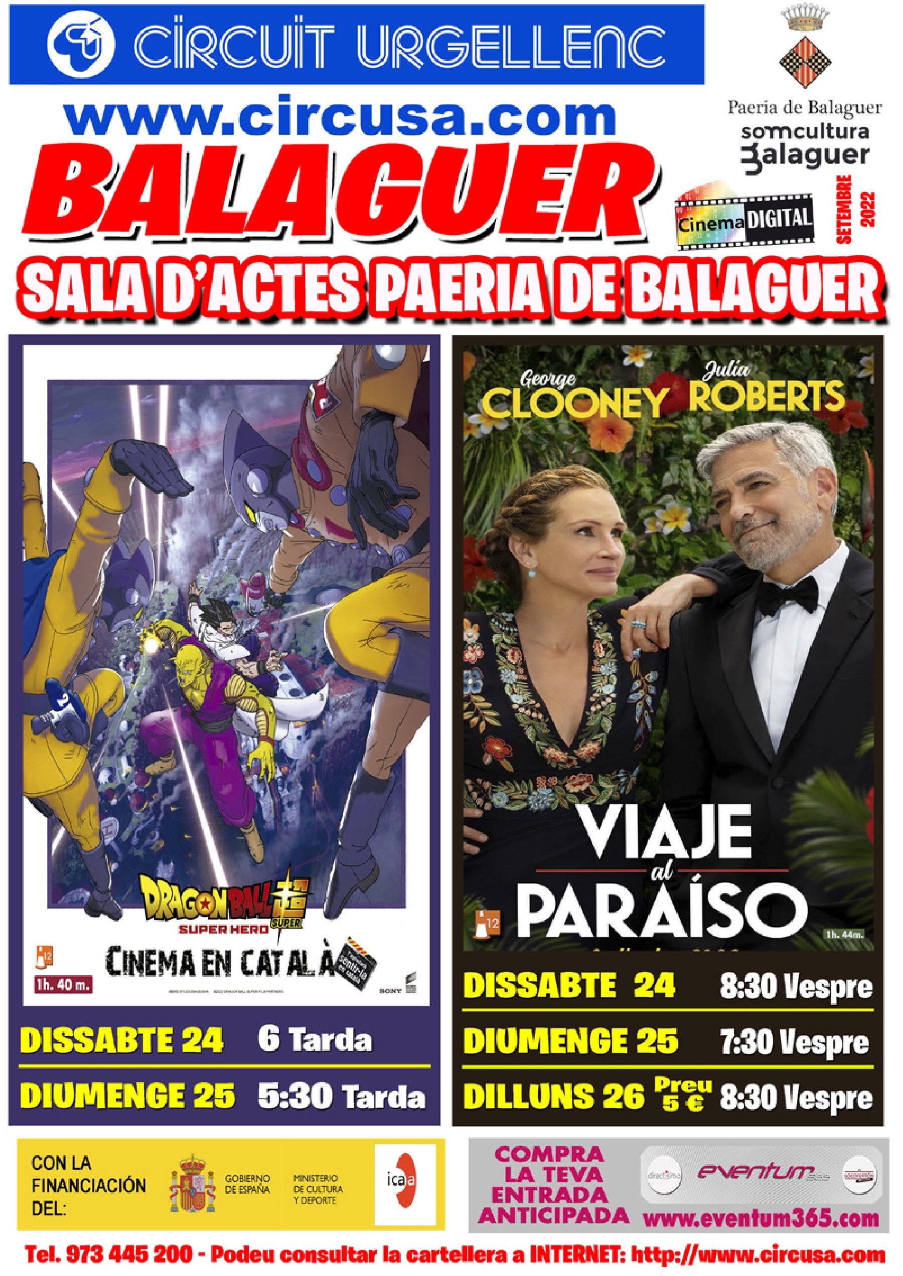 Al cinema Balaguer es podrà veure les pel·lícules: DRAGON BALL, SUPER HERO i VIAJE AL PARAÍSO, AMB Julia Roberts George Clooney