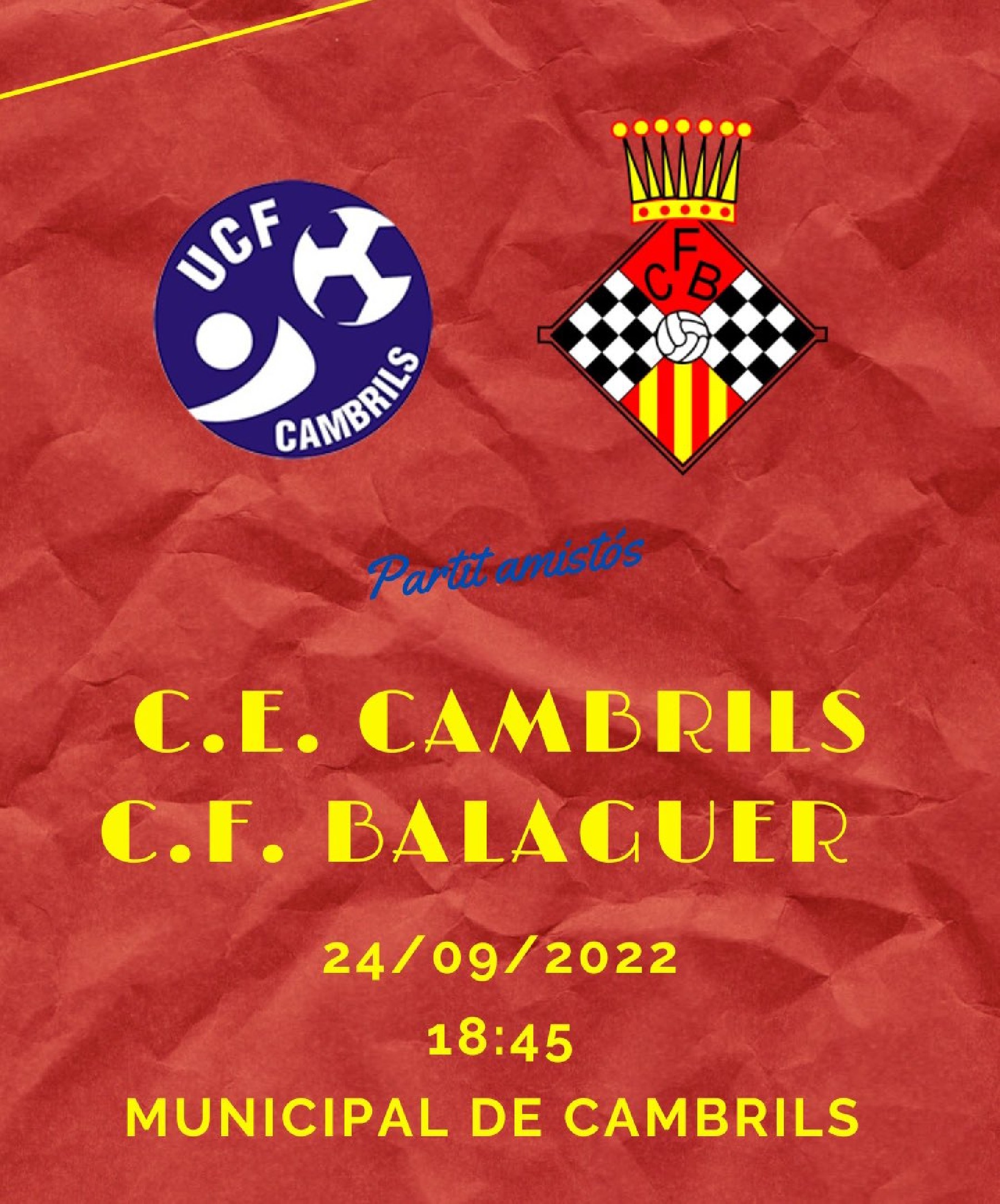 El Club Futbol Balaguer afronta aquest dissabte l'últim partit de la pretemporada en que visitarà el camp del Cambrils, equip també de Primera Catalana. Es disputarà a ¾ de 7 de la tarda