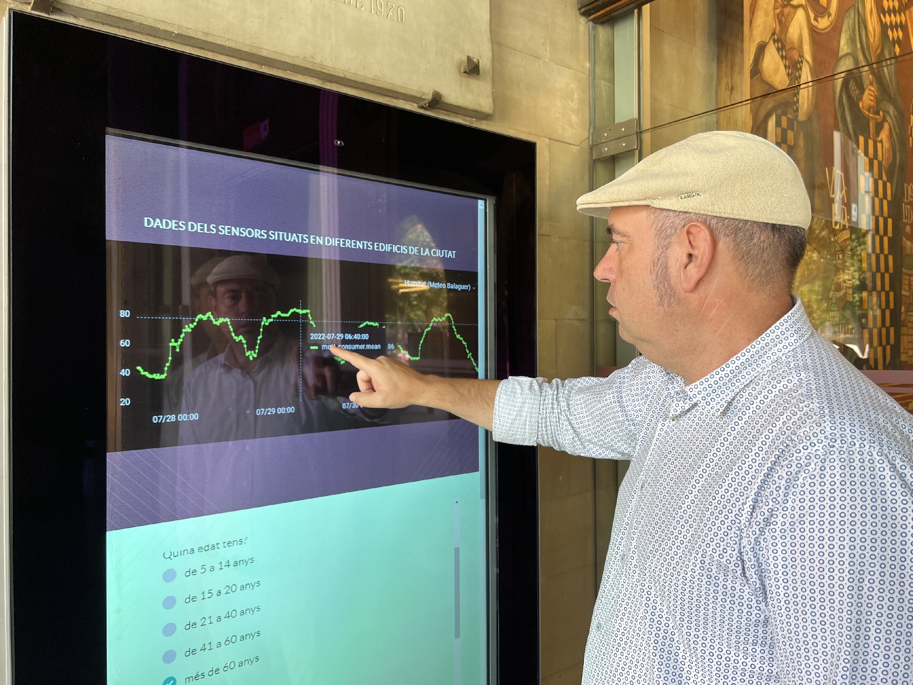 S'ha posat en funcionament a l'entrada de la casa de la Paeria una gran pantalla que permet, entre altres, conèixer les dades de consum energètic d'edificis municipals en temps real