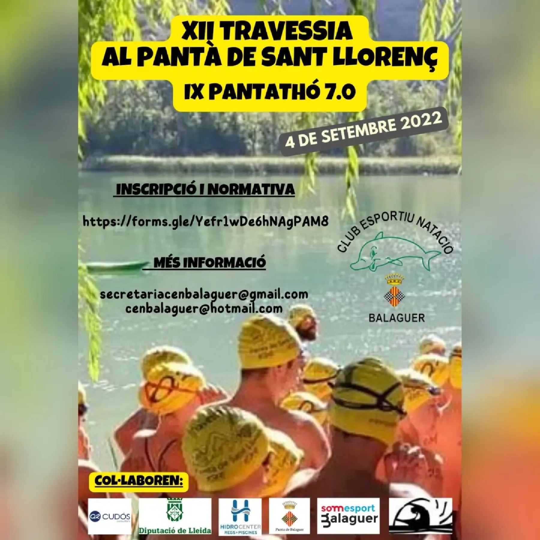 El CEN Balaguer organitza el 4 de setembre la 12a Travessia al Pantà de Sant Llorenç. Comptarà amb distàncies des dels 250 metres i fins a la Pantathó 7.0 de 7000 metres de recorregut, puntuables pel Circuit Català