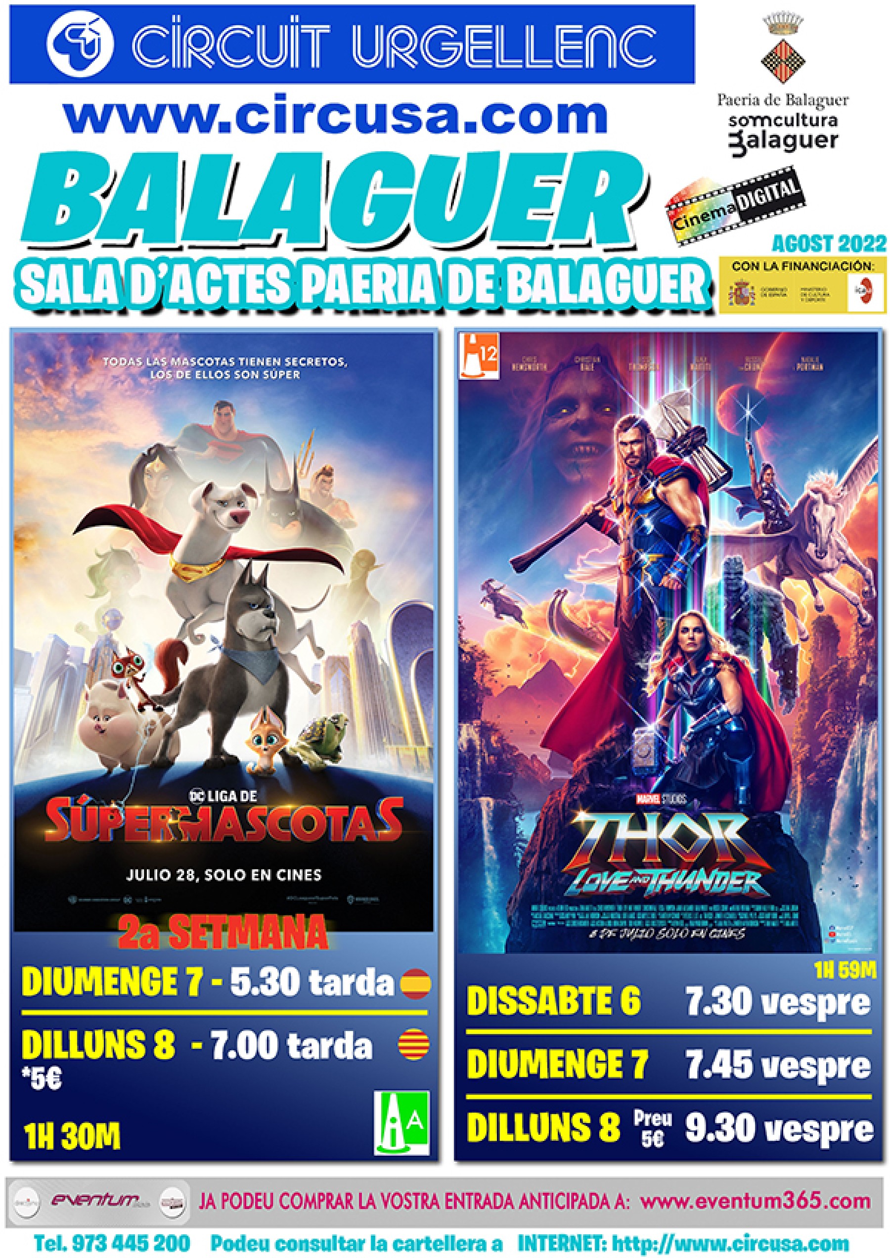 Al cinema Balaguer es podran veure aquest cap de setmana: THOR: LOVE AND THUNDER i també per segona setmana la pel·lícula DC LIGA DE SUPERMASCOTAS