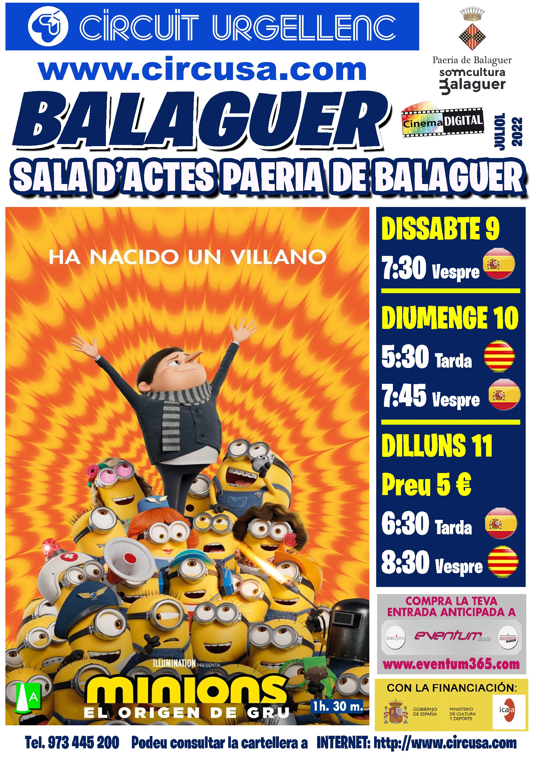 Arriba al Cinema Balaguer la gran estrena de la pel·lícula MINIONS: L' ORIGEN DE GRU