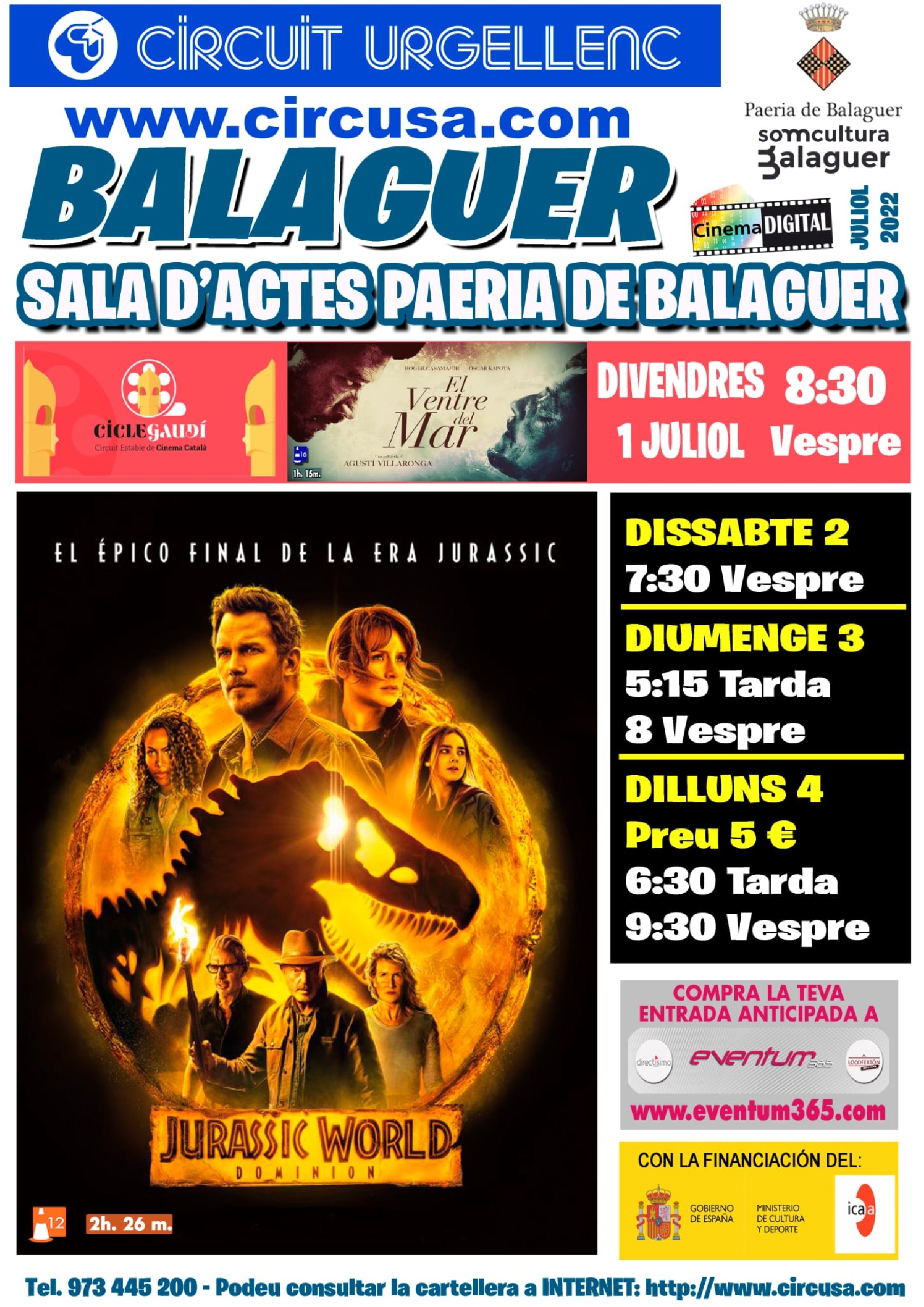 Arriba al Cinema Balaguer la gran estrena de la pel·lícula JURASSIC WORLD: DOMINION