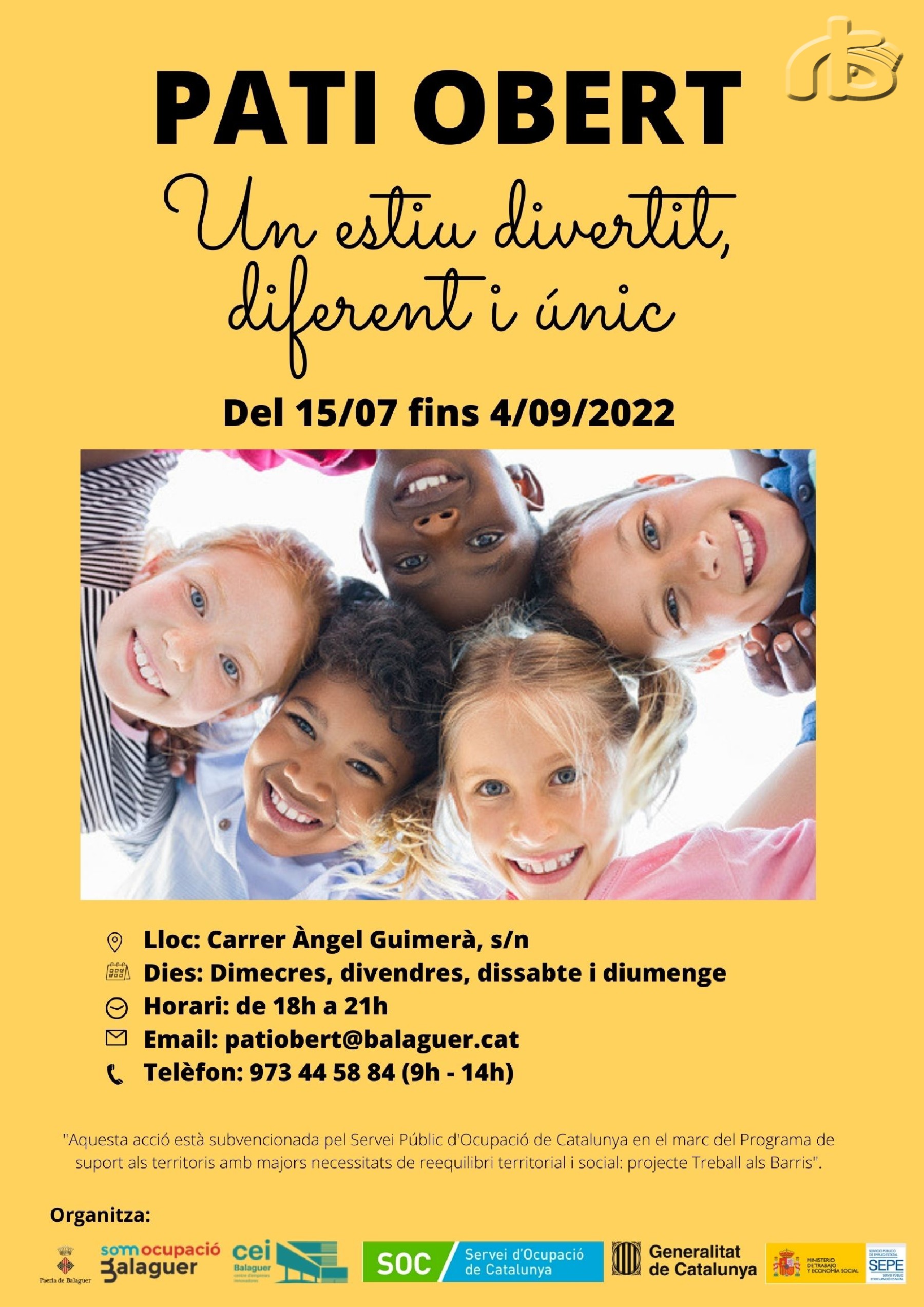 La Paeria de Balaguer torna a organitzar el projecte socioeducatiu Pati Obert a l'Escola Àngel Guimerà, al centre històric, i en el marc del Programa Treballs als Barris 2021