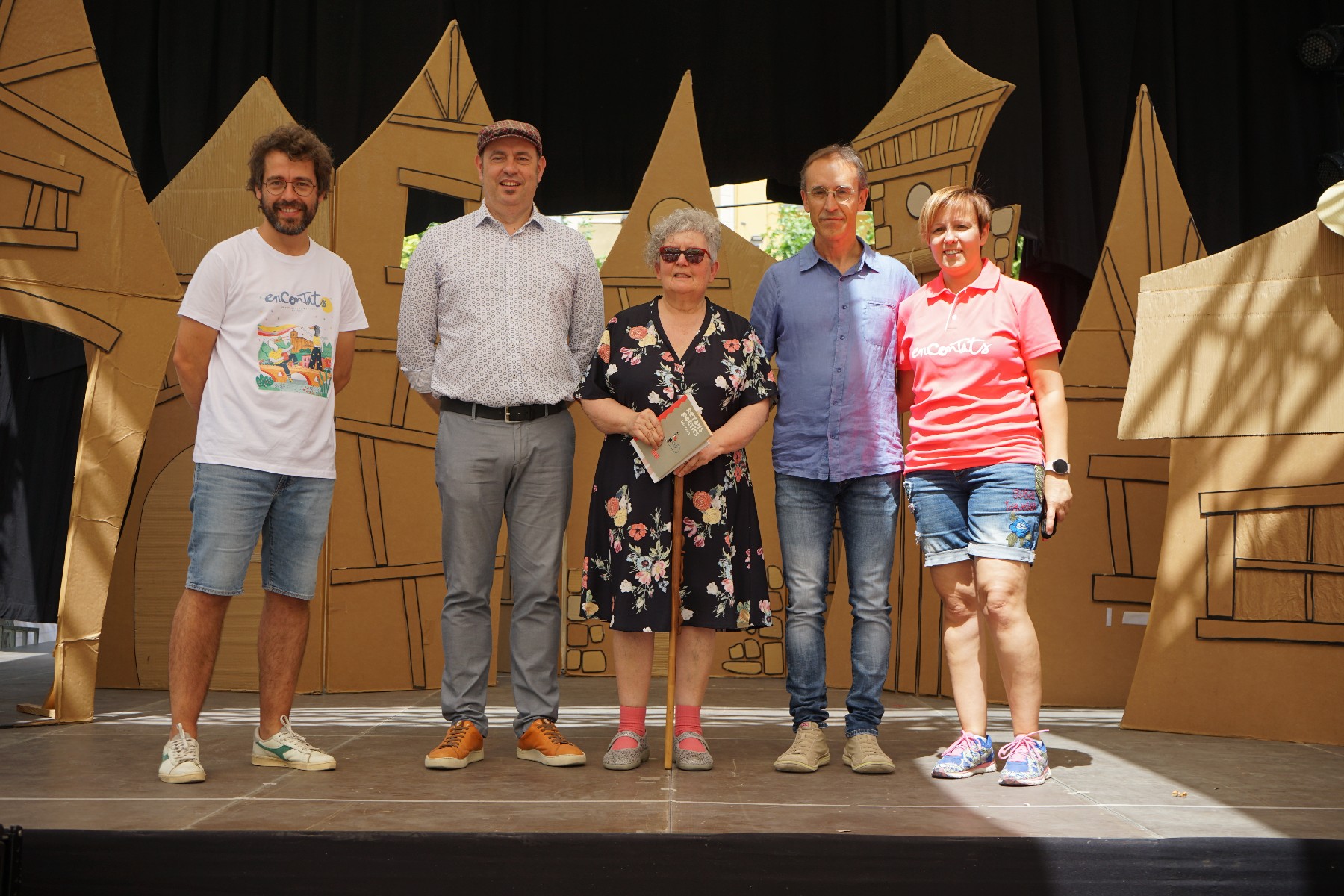 Lola Casas, padrina de l'Encontats d'enguany ha rebut la vara de la mà de Pep Molist, el padrí de l'any passat. El concert 'Quadern de bitàcola' de Reggae per Xics - The Penguins ha `posat el punt i final aquest vespre a la 7a edició de l'Encontats