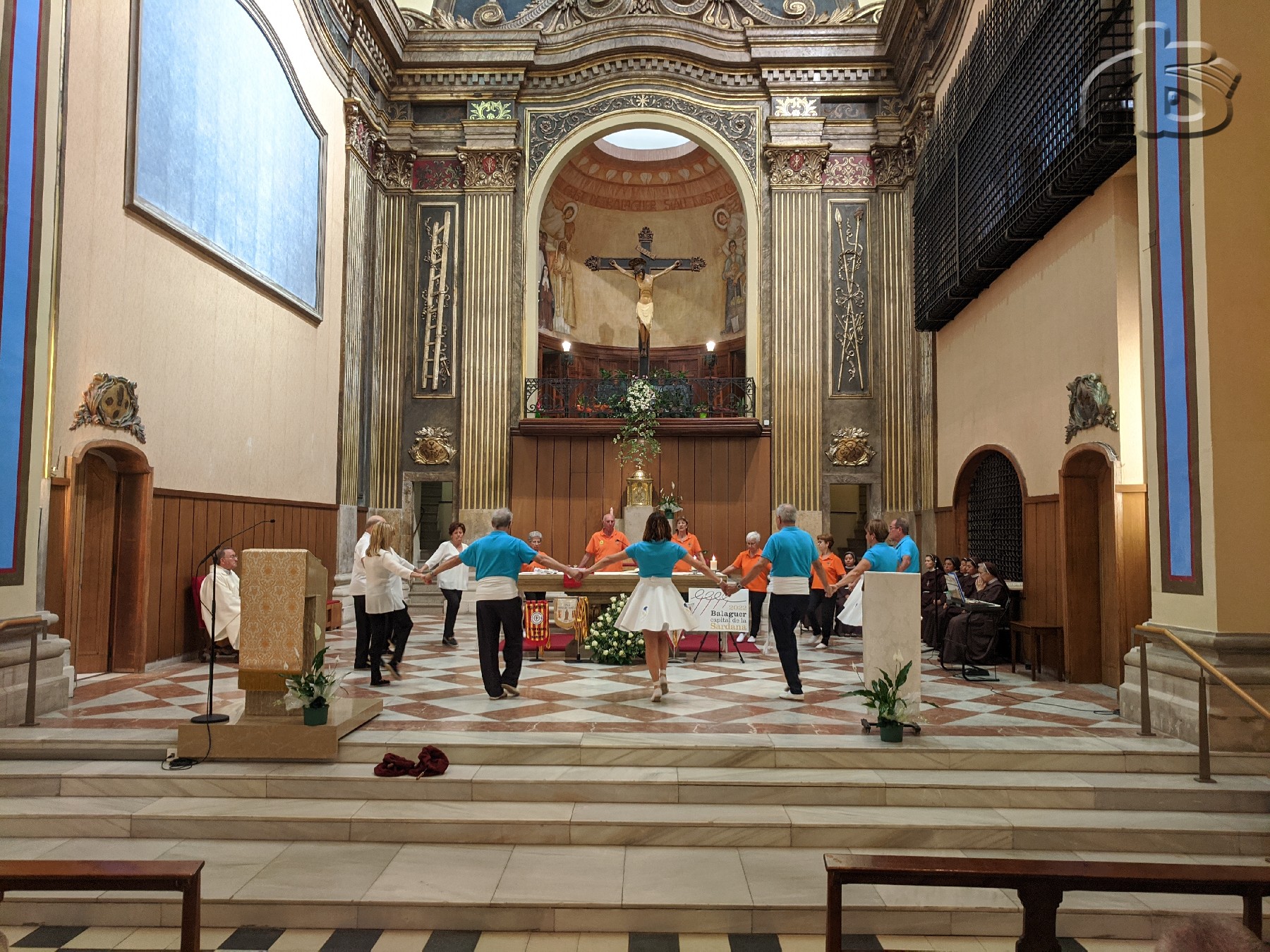 Trobada d'escoles de Cobla al Parc del Sant Crist de Balaguer, una activitat dins dels actes del Dia Universal de la Sardana, que han començat amb una missa a la basílica amb les ofrenes sardanistes