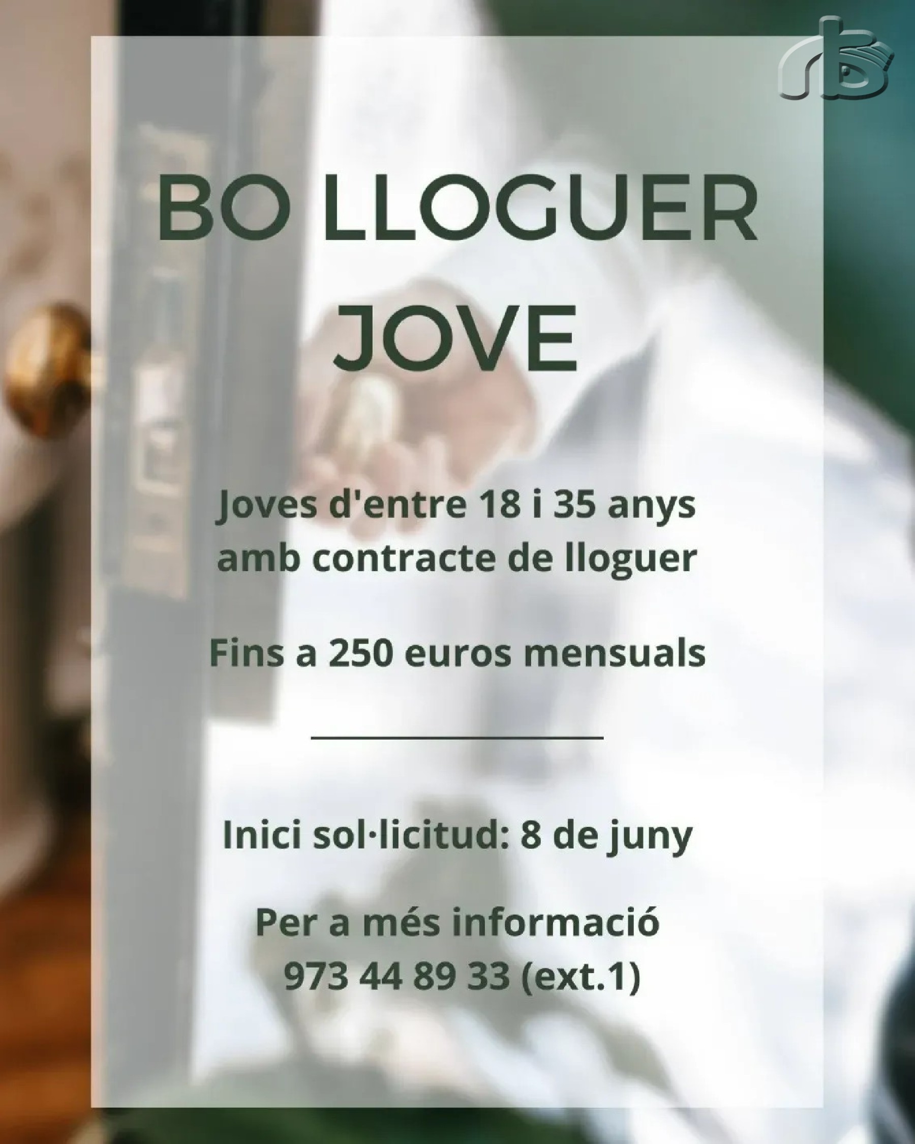 S'obre la convocatòria per sol·licitar la subvenció Bo Lloguer Jove de la Generalitat de Catalunya. Les persones residents a Balaguer que vulguin presentar la sol·licitud ho poden fer a l'Oficina d'Habitatge de la carretera de Camarasa