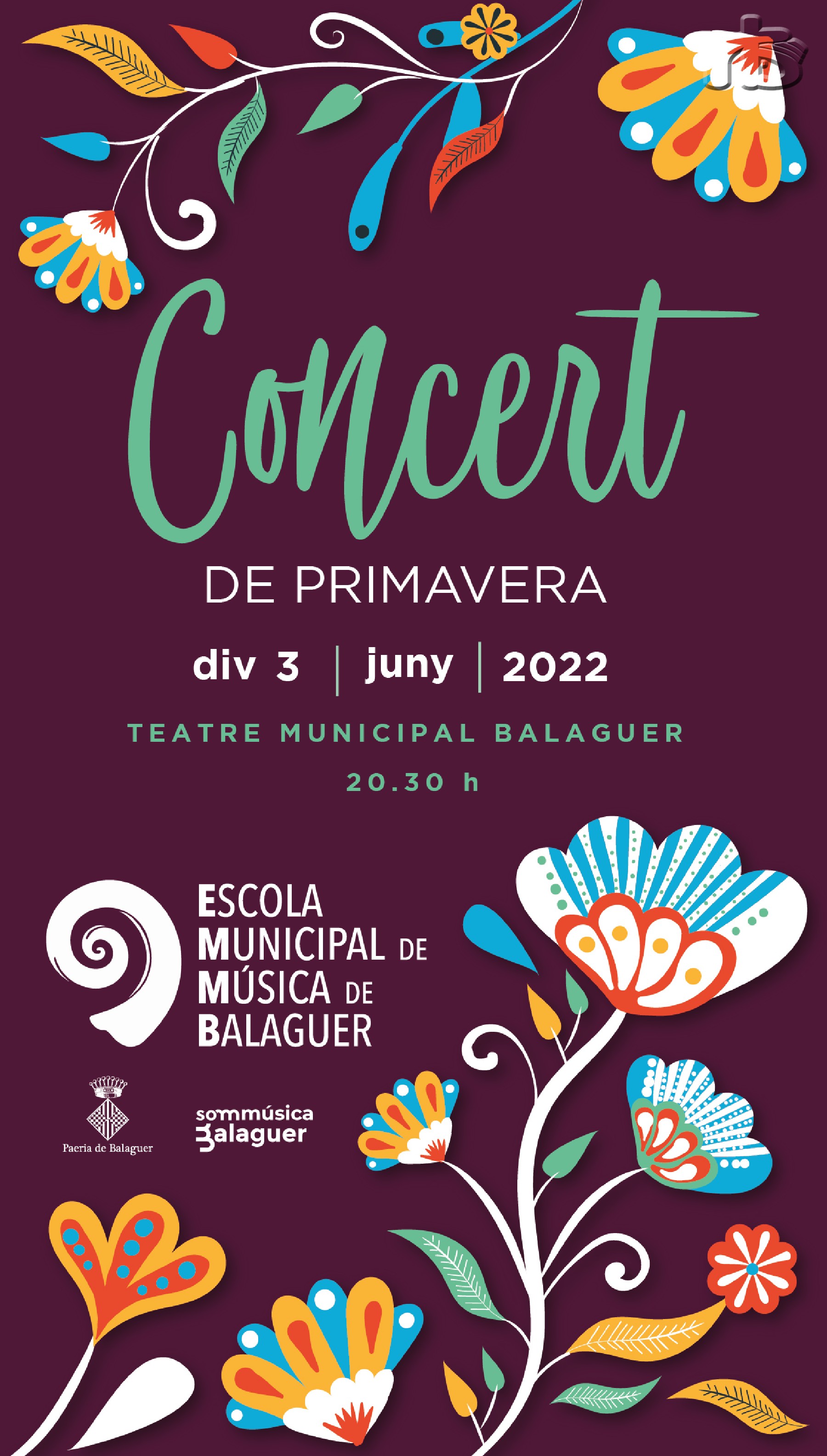 L'Escola Municipal de Música de Balaguer celebrarà el divendres dia 3 de juny el Concert de primavera al Teatre Municipal de Balaguer